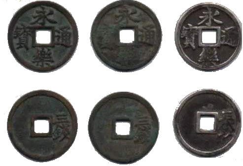 Картинка сразу трех монет в 3 вэнь Юнлэ тунбао