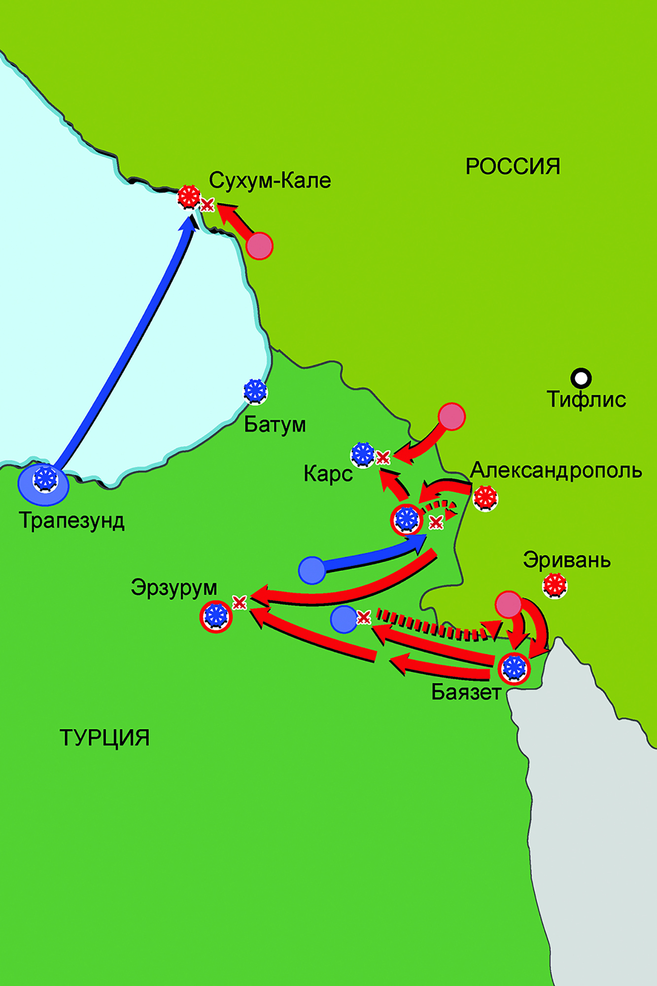 Карта кампании 1877–1878 гг. на Кавказе (Русско-турецкая война 1877–1878 гг.)