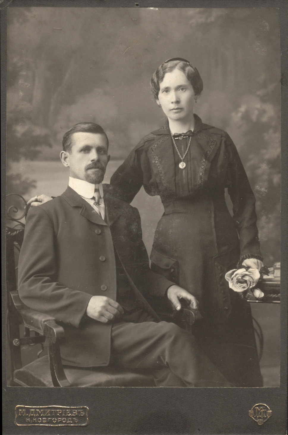 Дмитриев М.П.(1858-1948) Город Нижний Новгород. Портрет жителей села Павлова Горбатовского уезда Нижегородской губернии супругов Ежовых, Ивана Ивановича и Евгении Федоровны. Начало ХХ в