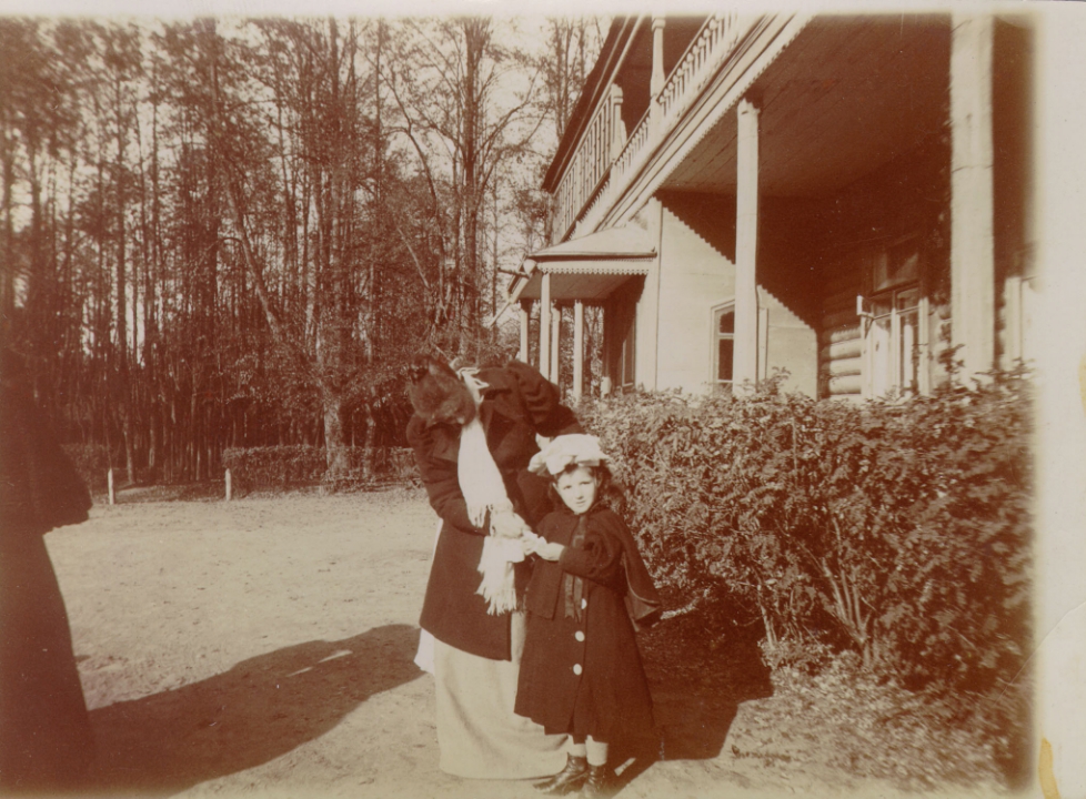 Наталия Павловна Дурдина с матерью и неизвестными женщинами у лестницы перед домом