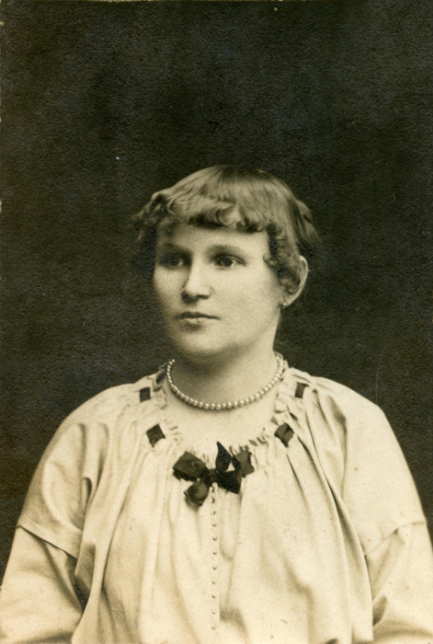 Наталия Павловна Дурдина с матерью и неизвестными женщинами у лестницы перед домом