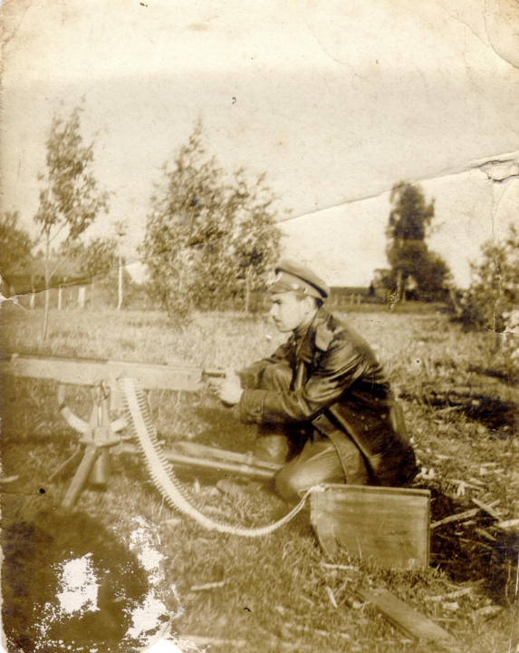А.А.Северин во время первой мировой войны у станкового пулемета системы "Кольт"