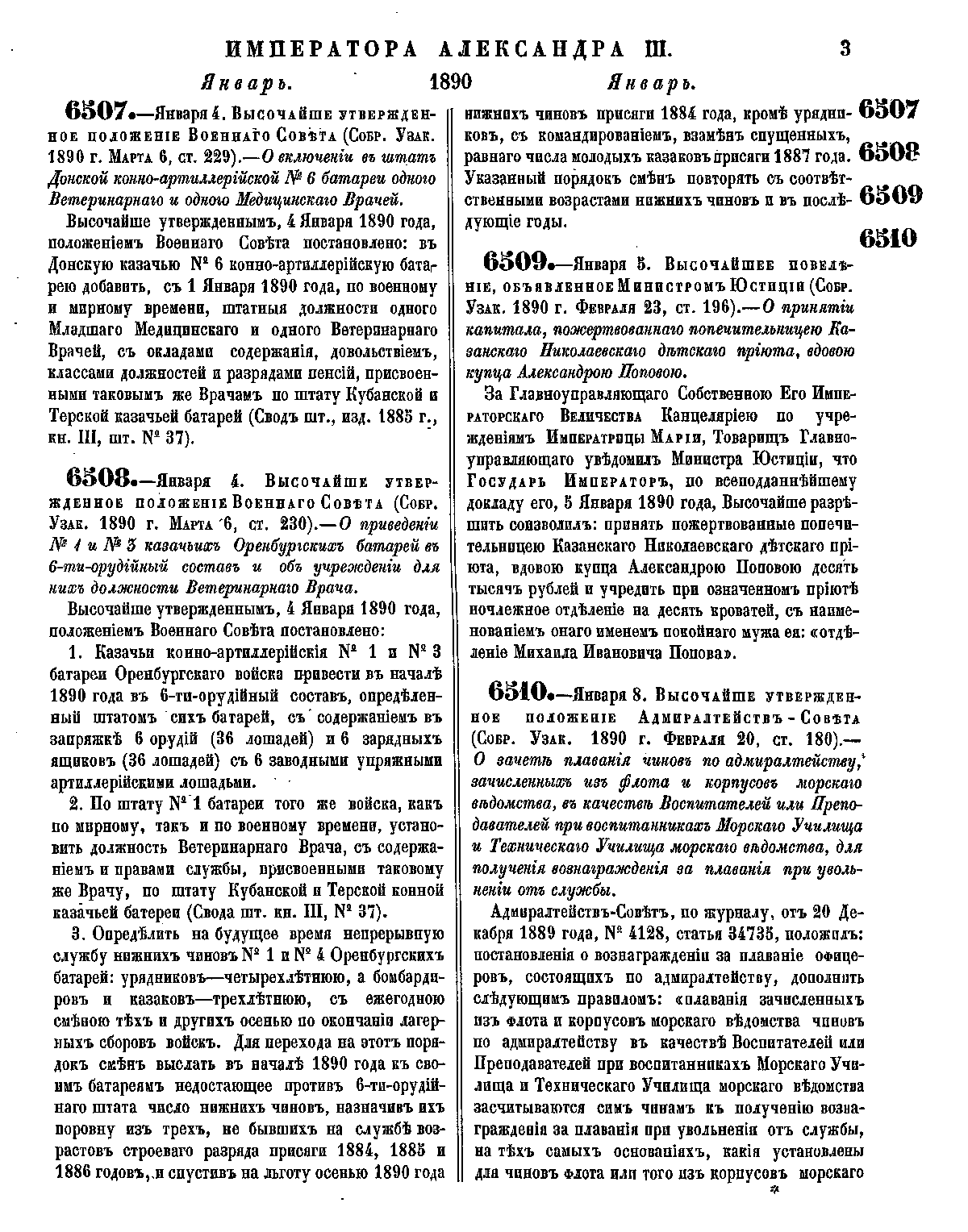 Третье издание выходило ежегодно до 1916 г., включает более 40 тысяч законодательных актов с 1 марта 1881 г. до конца 1913 г. — время правления Александра III — Николая II (33 тома).
