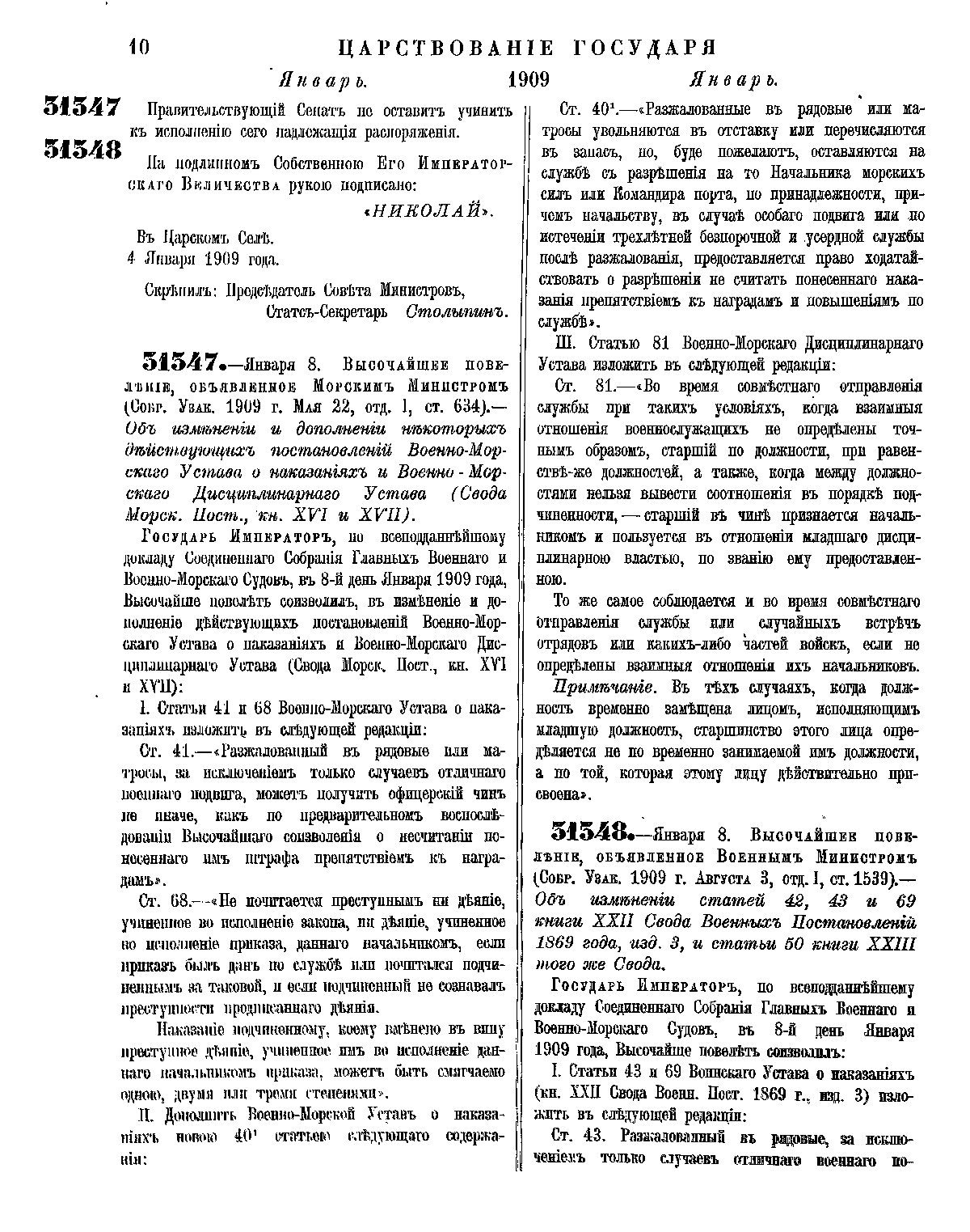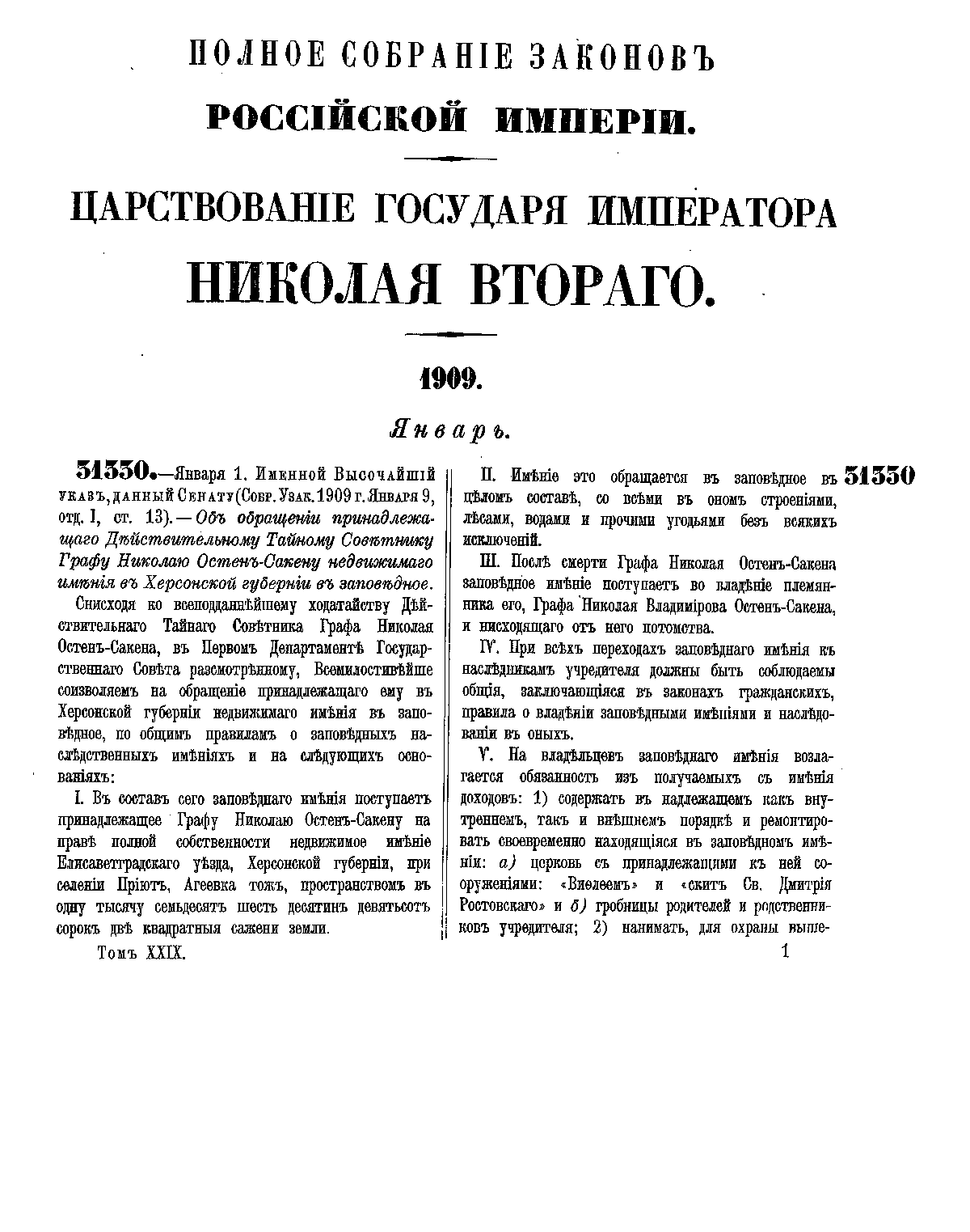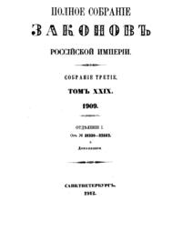 Полное собрание законов Российской Империи. Собрание Третье. Том XXIX. Отделение 1