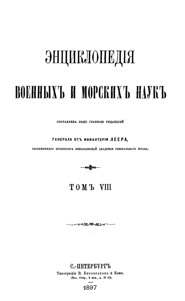 Энциклопедия военных и морских наук: Том VIII