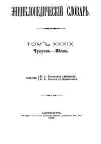 Самая крупная дореволюционная русская универсальная энциклопедия, выпущенная акционерным издательским обществом «Ф. А. Брокгауз — И. А. Ефрон». Состоит из 86 томов (82 основных и 4 дополнительных), выходивших в течение 1890-1907 годов. Первые 8 томов (до буквы «В») вышли под общей редакцией профессора И. Е. Андреевского и в основном содержали переводы на русский язык статей знаменитой немецкой энциклопедии Брокгауза «Konversations Lexikon».
