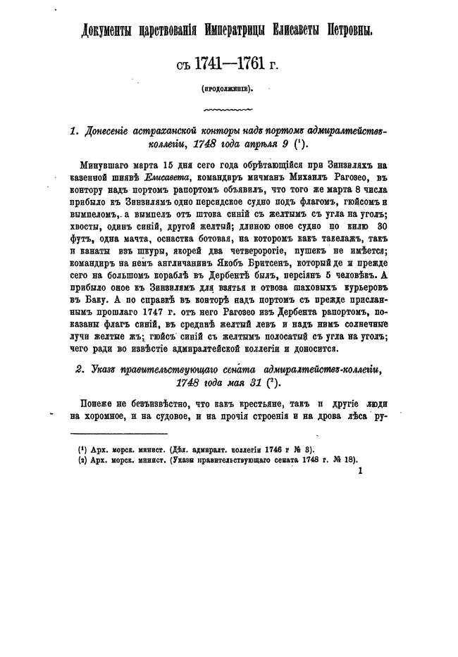 Первые 5 томов издания «Материалы для истории русского флота», изданные в 1865-1875 гг., были подготовлены историографом Российского флота С. И. Елагиным (1824 — 1868). После его смерти работу по написанию «Материалов...» продолжили его сотрудники и Ф.Ф. Веселаго. Всего же было издано 18 томов в период с 1865 по 1904 гг.