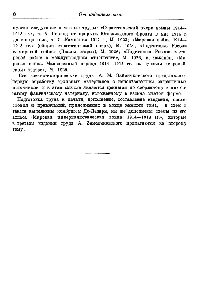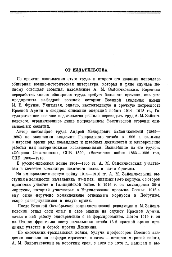 Во время Первой мировой войны Зайончковский командовал корпусами и армией, поэтому ему удалось совместить архивные данные с собственными наблюдениями и опытом.
