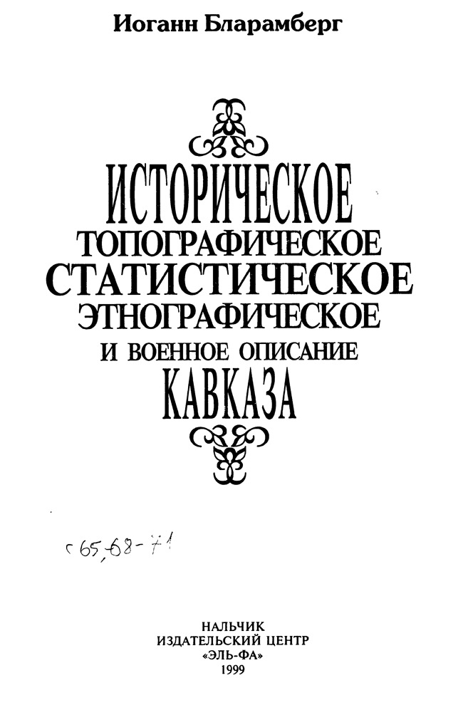 Эта книга была написана в 1834 году Иоганном Бларамбергом — офицером Генерального штаба Российской империи, служившим в Отдельном Кавказском корпусе. Еще в начале 1828 года Николай I отдал приказ о необходимости составления свода материалов о горских и кочевых народах Кавказа, что впоследствии было поручено осуществить Бларамбергу.