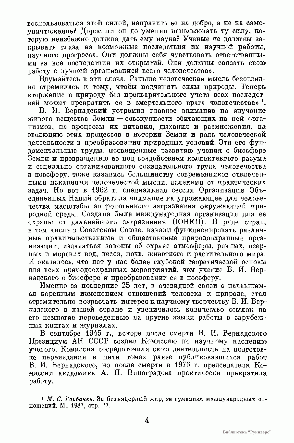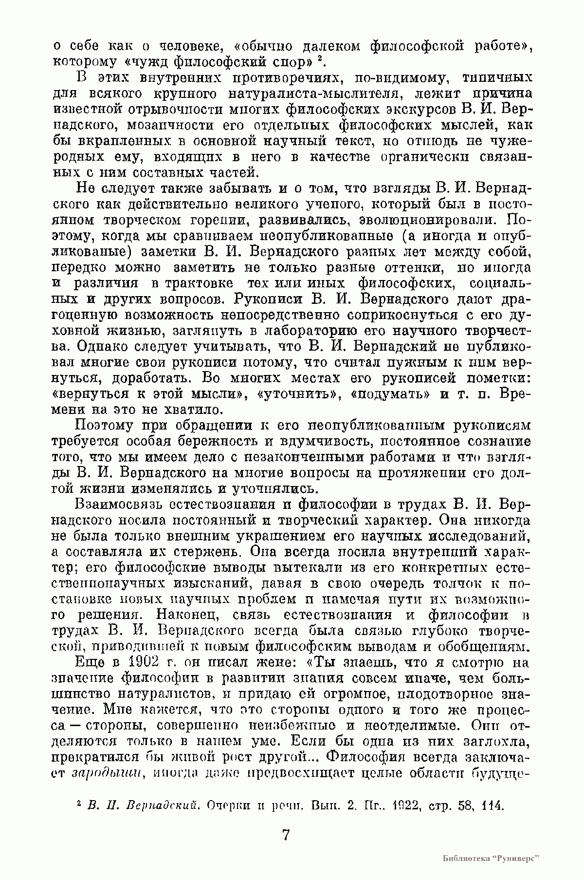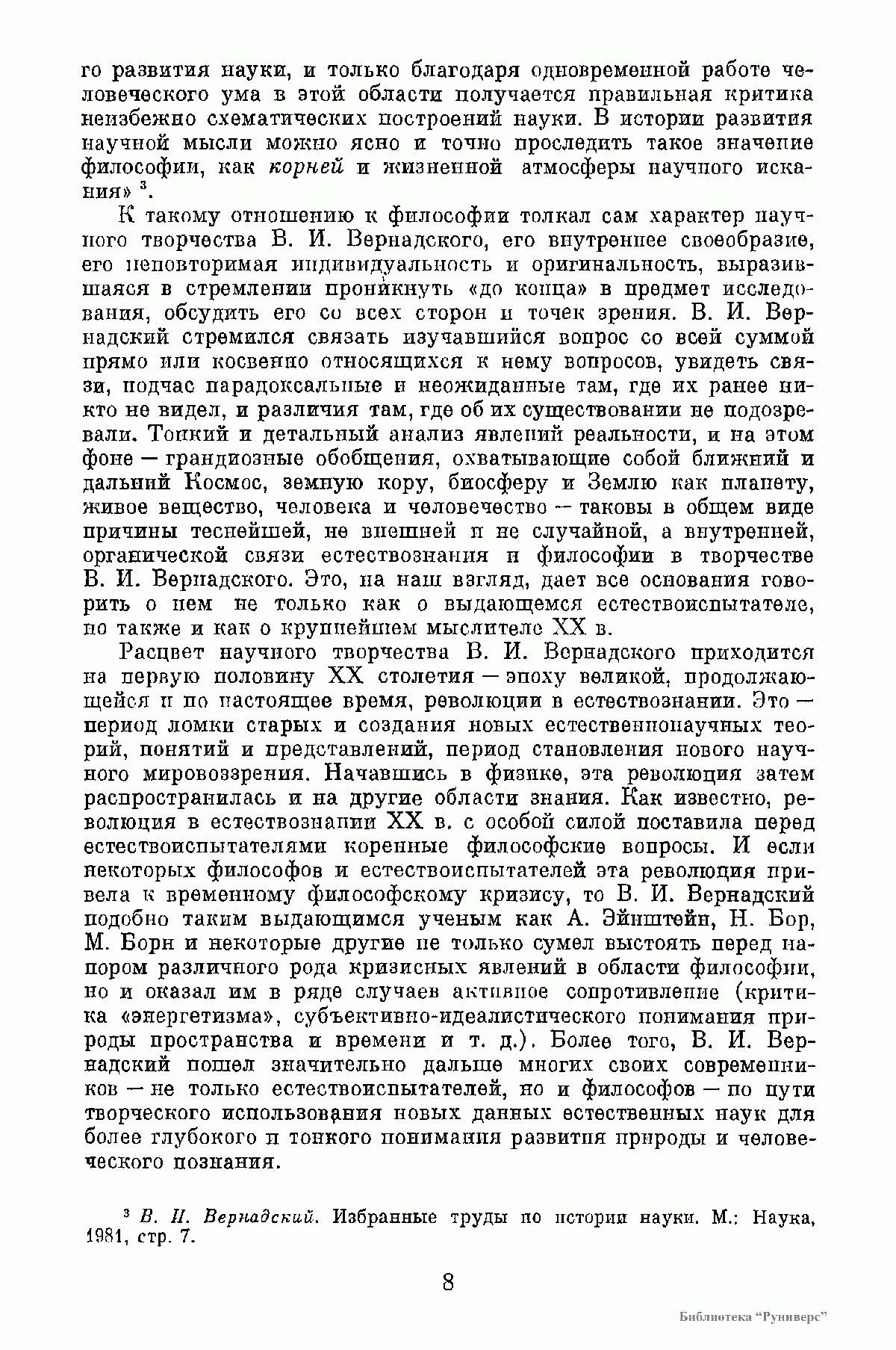 В книге по сохранившимся в Архиве АН СССР рукописям В. И. Вернадского публикуются его последние работы «Научная мысль как планетное явление» и серия очерков, объединенных под заглавием «Пространство и время в неживой и живой природе», которые в 1975 и 1977 гг. были изданы со значительными сокращениями в двух книгах под общим названием «Размышления натуралиста». Для настоящего издания все тексты заново сверены с оригиналами. Книга содержит, кроме того, малоизвестные, а также непубликовавшиеся, а потому остававшиеся до сих пор неизвестными, фрагменты незавершенных работ, наброски речей и докладов, выдержки из дневников и писем ученого, в которых обсуждаются философские и социальные вопросы науки.