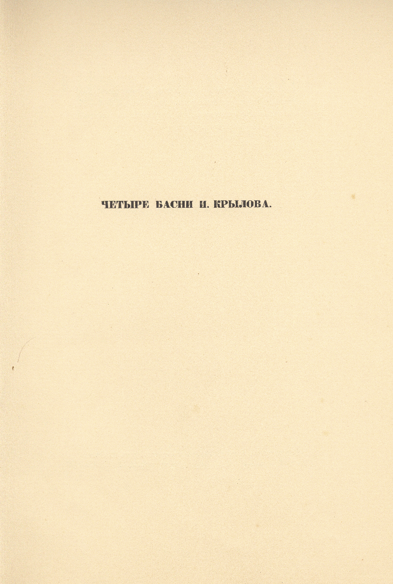 В это издание вошли четыре басни Ивана Андреевича Крылова: «Конь и всадник», «Квартет», «Собачья дружба» и «Демьянова уха», каждая из которых иллюстрирована не издававшимися ранее рисунками художника начала XIX века Александра Орловского. Издание отпечатано типографией Р. Голике и А. Вильборг на плотной бумаге верже желтоватого цвета.