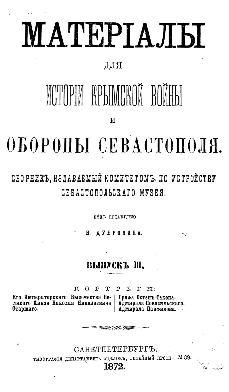 Матерiалы для исторiи Крымской войны и обороны Севастополя. Выпуск III