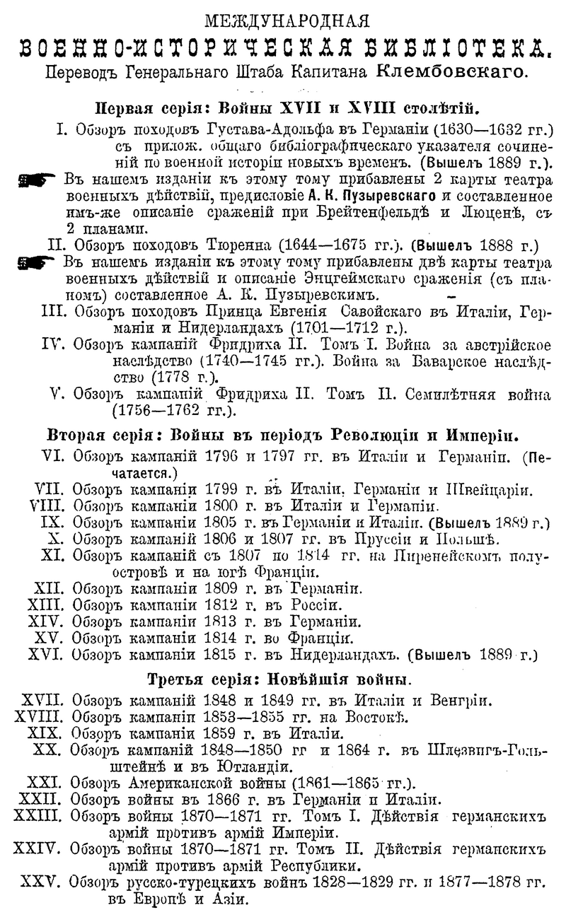 Оно было подготовлено к изданию и переведено В.Н. Клембовским, выпускником академии Генерального штаба, в дальнейшем известным военным деятелем, занимавшим должность командующего Северным фронтом накануне военного переворота генерала Л.Г. Корнилова в августе 1917 г. Через год он был принят на службу в Красную Армию, некоторое время являлся председателем военно-исторической комиссии по изучению опыта мировой войны, а в 1920 г. — членом Особого совещания при главкоме Вооруженных сил Республики. Данная книга в популярной форме довольно подробно описывает классическую кампанию 1805 г. в Европе, акцентируя внимание, главным образом на особенностях полководческого гения Наполеона.