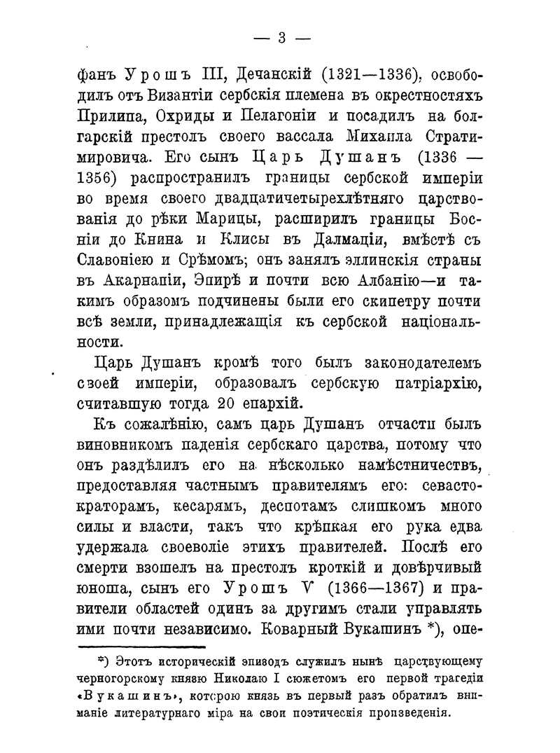 Черногорский народ и его династии с древнейших времён выделялись в общей сербской истории. В книге содержатся краткие сведения о династии Бальшичей (1356 – 1421); династии князей Черноевичей (1423 – 1516); о Черногории, управляемой владыками-митрополитами (1499 – 1695); о царствующей династии Петровичей-Негошей (1697 – 1851); о Черногории под властью светских князей из дома Петровичей-Негошей (с 1851).