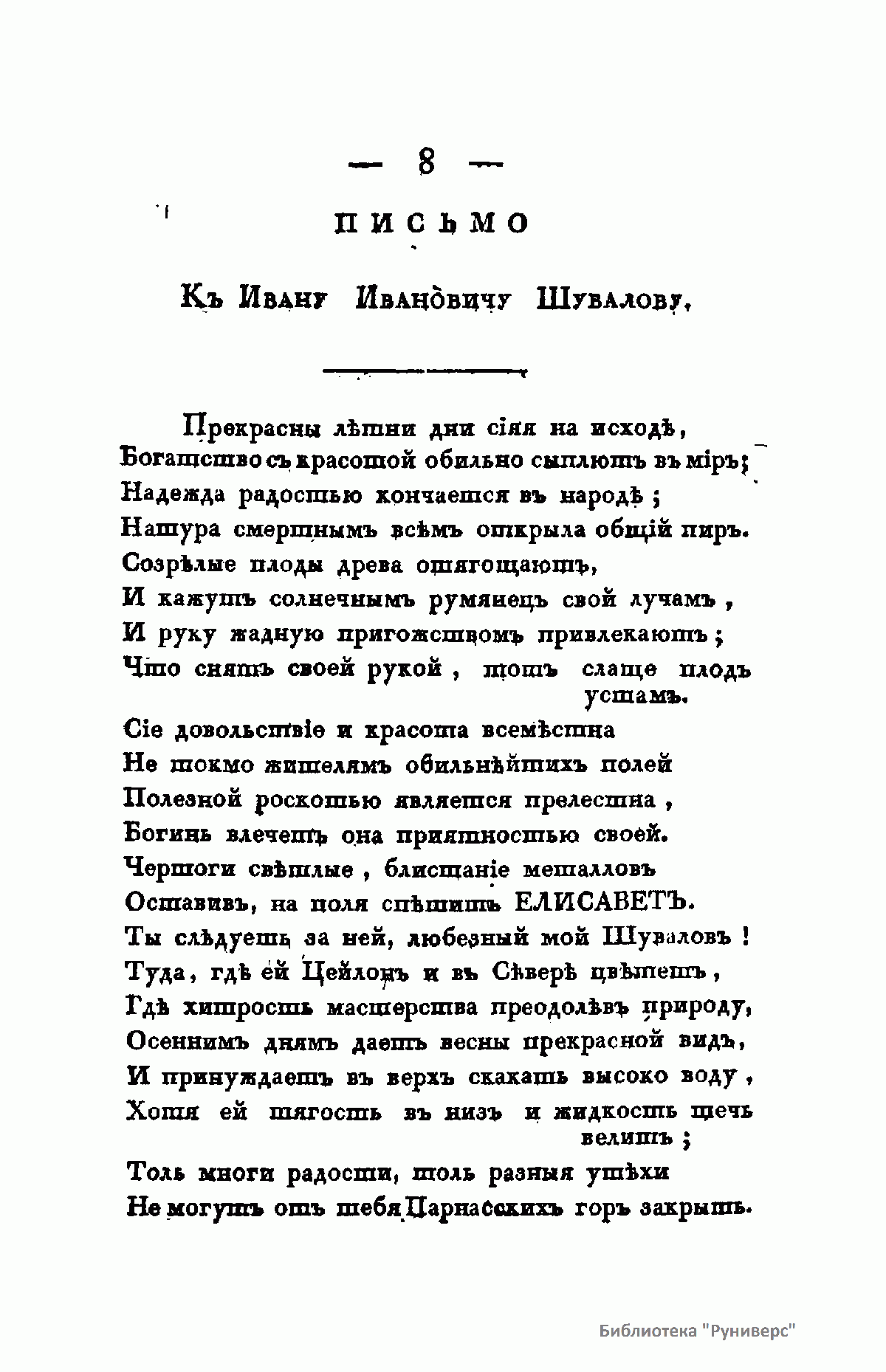 Письмо покойного Михаила Васильевича Ломоносова к Ивану Ивановичу Шувалову