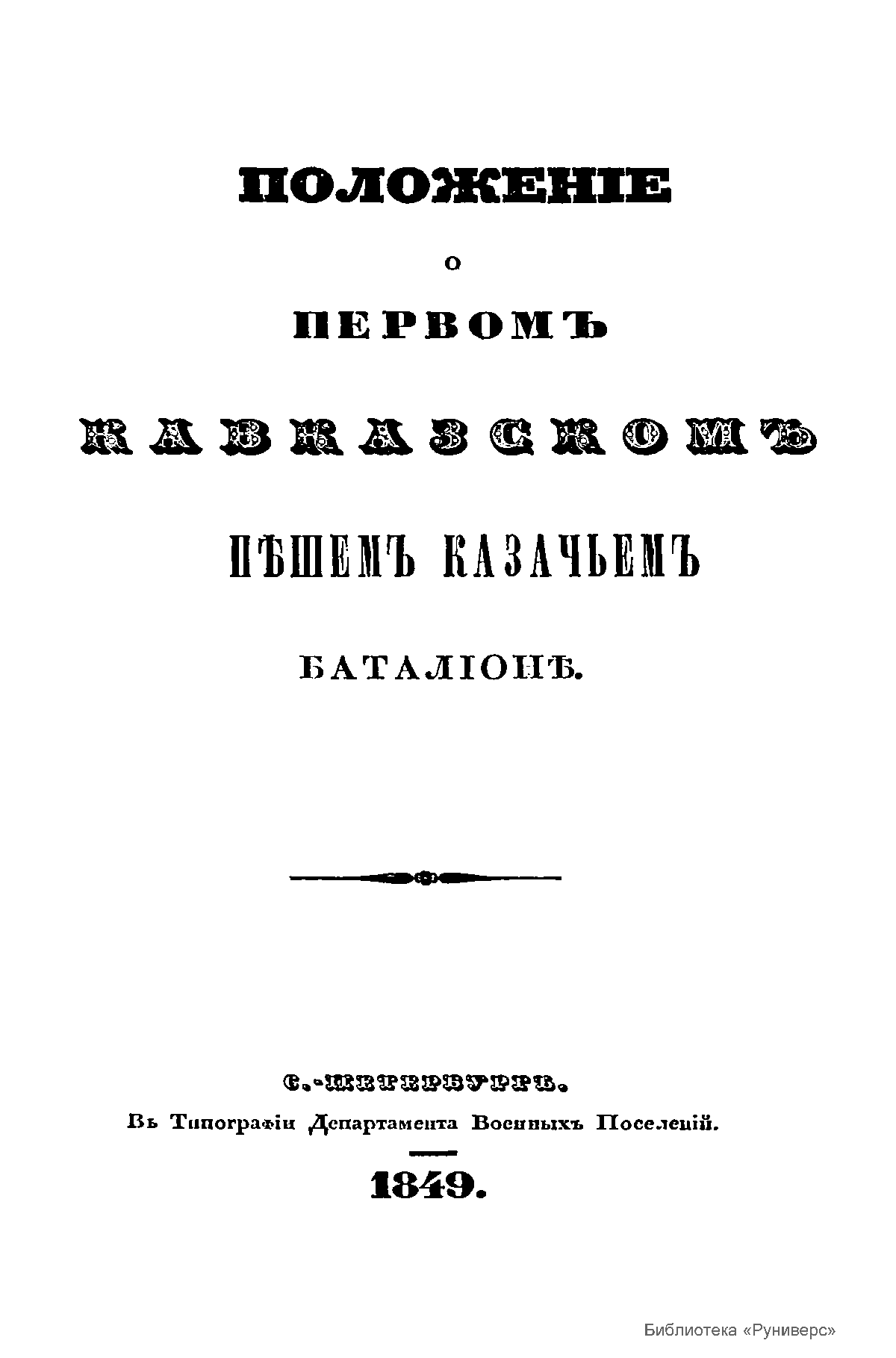 Положенiе о первомъ кавказскомъ пѣшемъ казачьемъ баталiоне