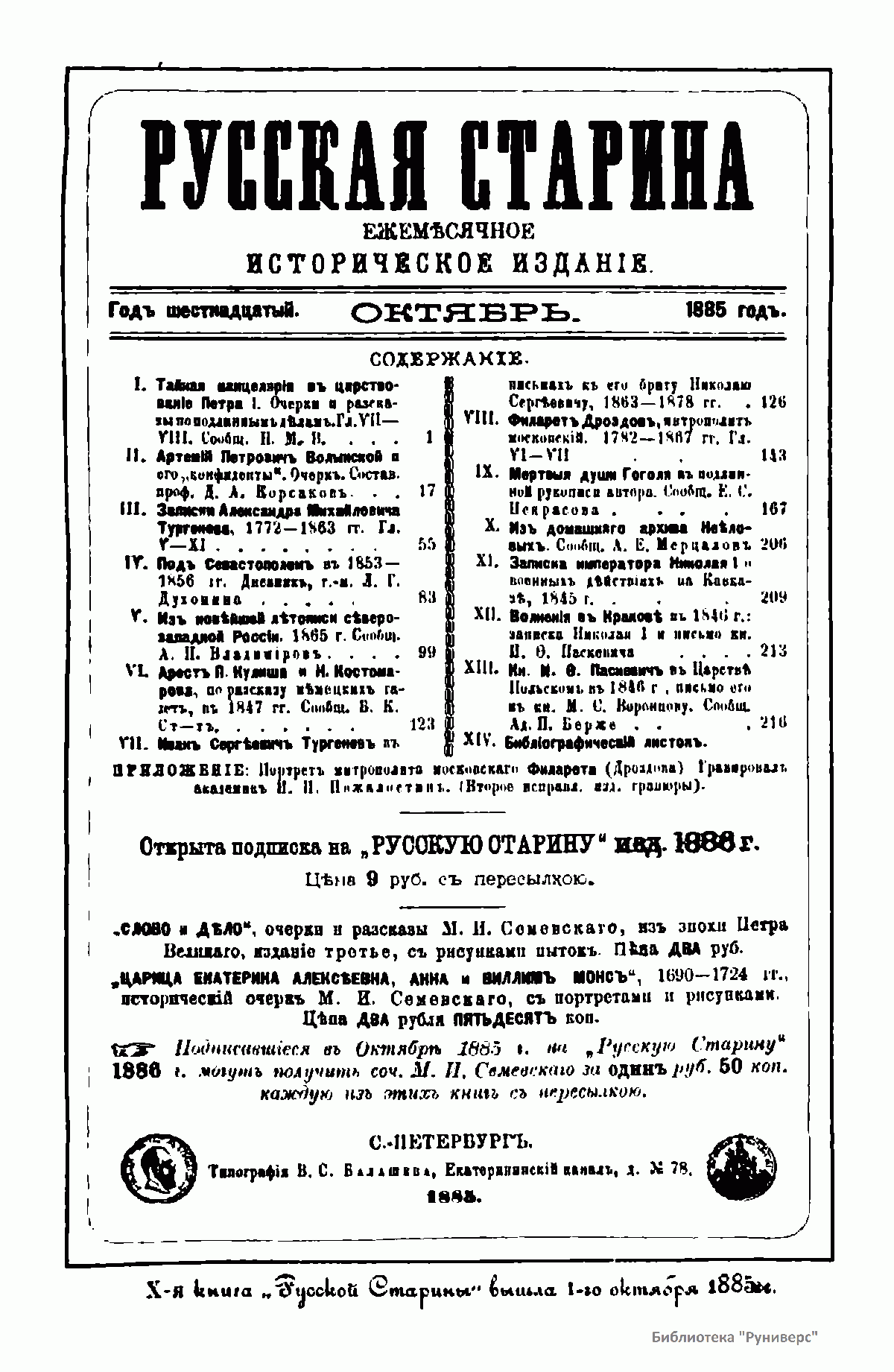 Русская cтарина. Томъ XLVIII. 1885. Выпуски 10-12