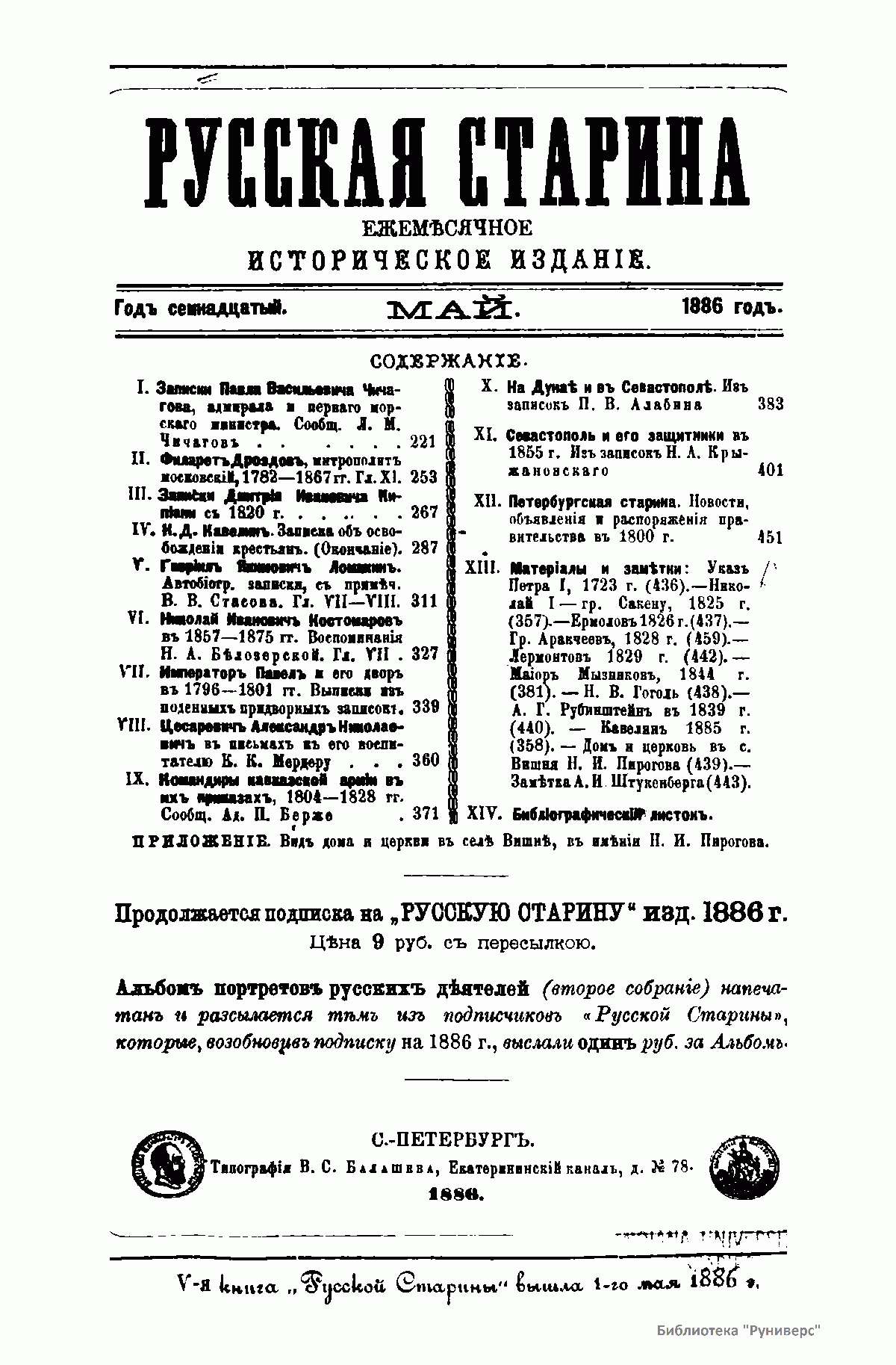 Русская cтарина. Томъ L-LI. 1886. Выпуски 5-8