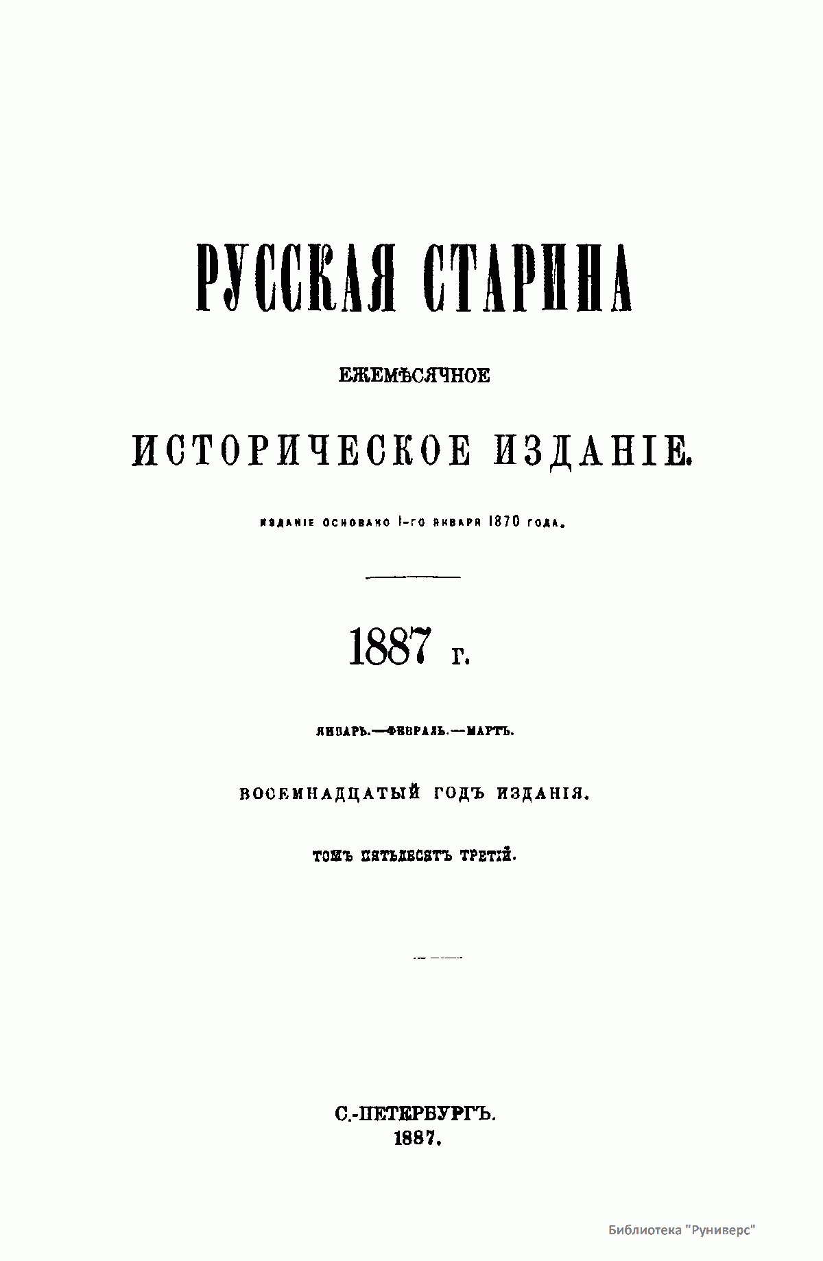 Русская cтарина. Томъ LIII. 1887. Выпуски 1-3
