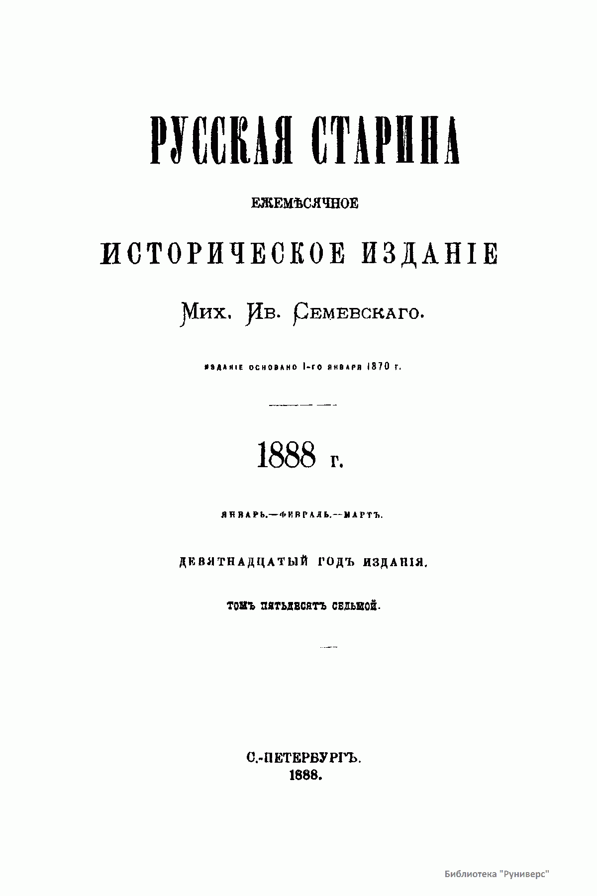 Русская cтарина. Том LVII. 1888. Выпуски 1-3