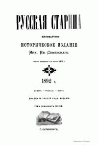 Русская cтарина. Томъ LXXIII. 1892. Выпуски 1-3