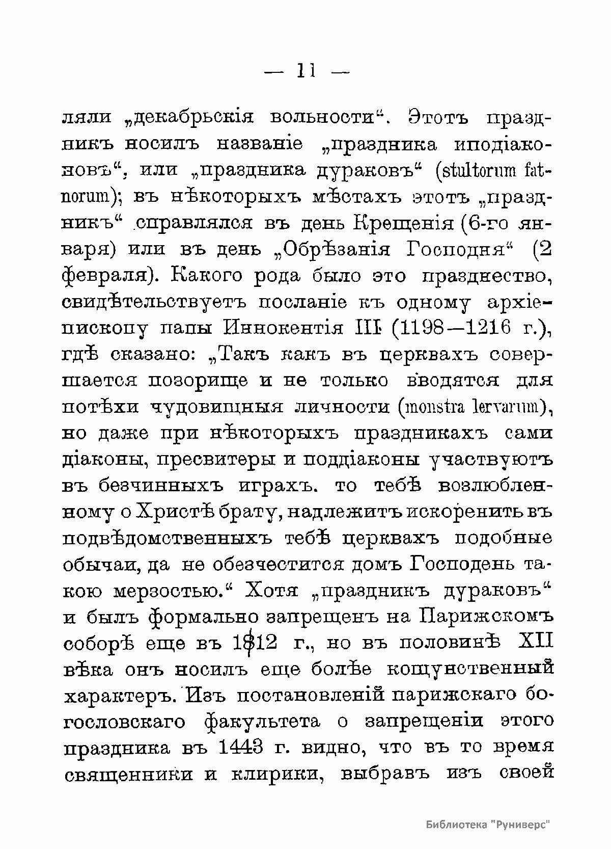 «Гулянье под Новинским, как и теперь, начиналось от Кудринской площади. В начале гулянья красовалась деревянная изящная кофейная, которую содержал известный в то время трактирщик С.И. Печкин. Кофейная эта во время всего гулянья постоянно была набита самым отборным обществом и отъявленными франтами-кутилами. Музыка, цыгане оглашали воздух, а удалая молодежь бросала деньги как щепки, и шампанское лилось рекой». В издании в увлекательной форме рассказана история русских праздников. Книга заключает шесть глав: Рождество; новолетия; новогодние издания или альманахи; Крещение; масленица; празднование масленицы в столицах Москве и Петербурге. Кроме описания русских и «заморских» забав, мелких колоритных бытовых подробностей, дворцовых церемоний, церковных обычаев, читатель найдет и увлекательные истории, связанные с именами Петра Первого, Елизаветы Петровны, Анны Иоанновны, Екатерины Второй.