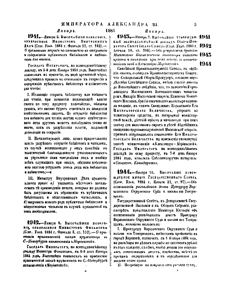 Третье издание выходило ежегодно до 1916 г., включает более 40 тысяч законодательных актов с 1 марта 1881 г. до конца 1913 г. — время правления Александра III — Николая II (33 тома).