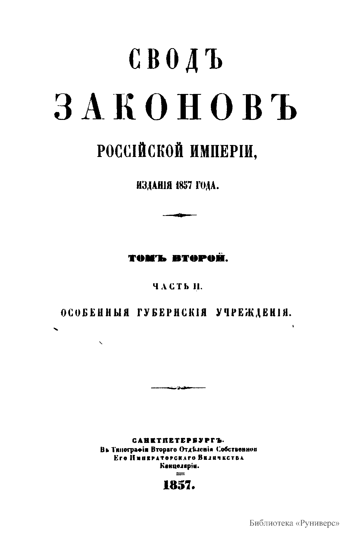 Свод законов Российской империи. Том второй. Часть II. Особенные губернские учреждения