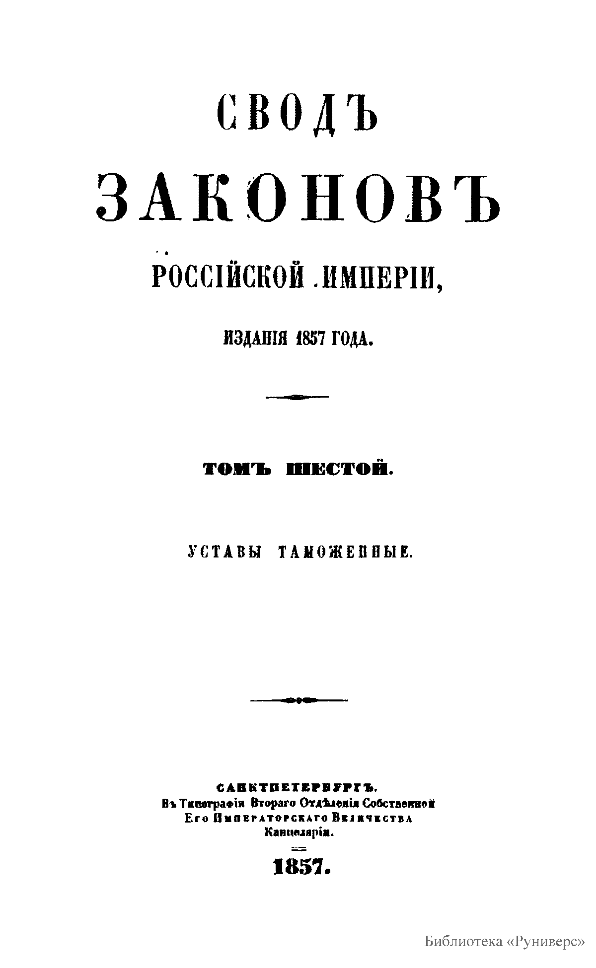 Сводъ законовъ Россiйской имперiи. Томъ шестой. Уставы таможенные