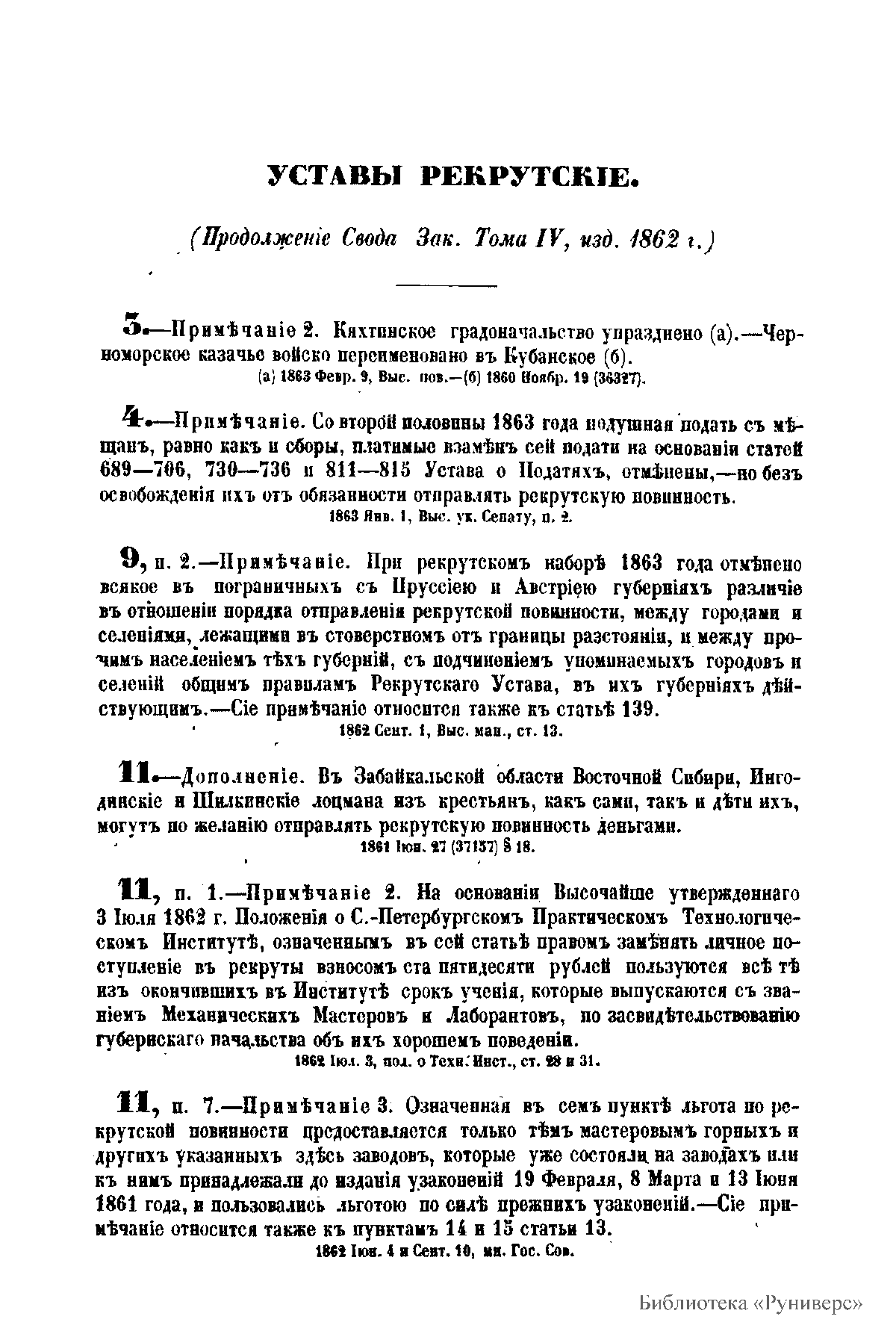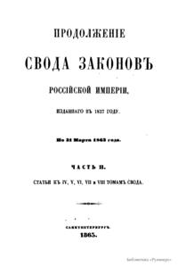 Продолжение свода законов Российской империи, изданного в 1857 году. По 31 мая 1863 года. Часть II. Статьи к IV, V, VII, VIII томам свода