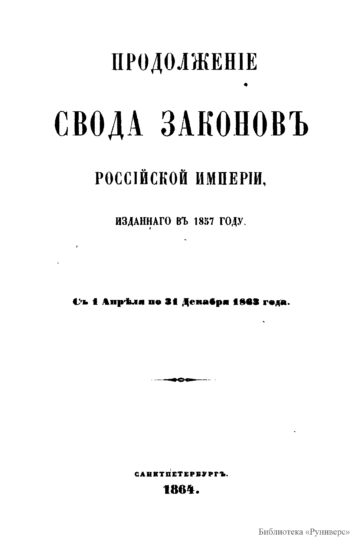 Продолжение свода законов Российской империи, изданного в 1857 году. С 1 апреля по 31 декабря 1863 года