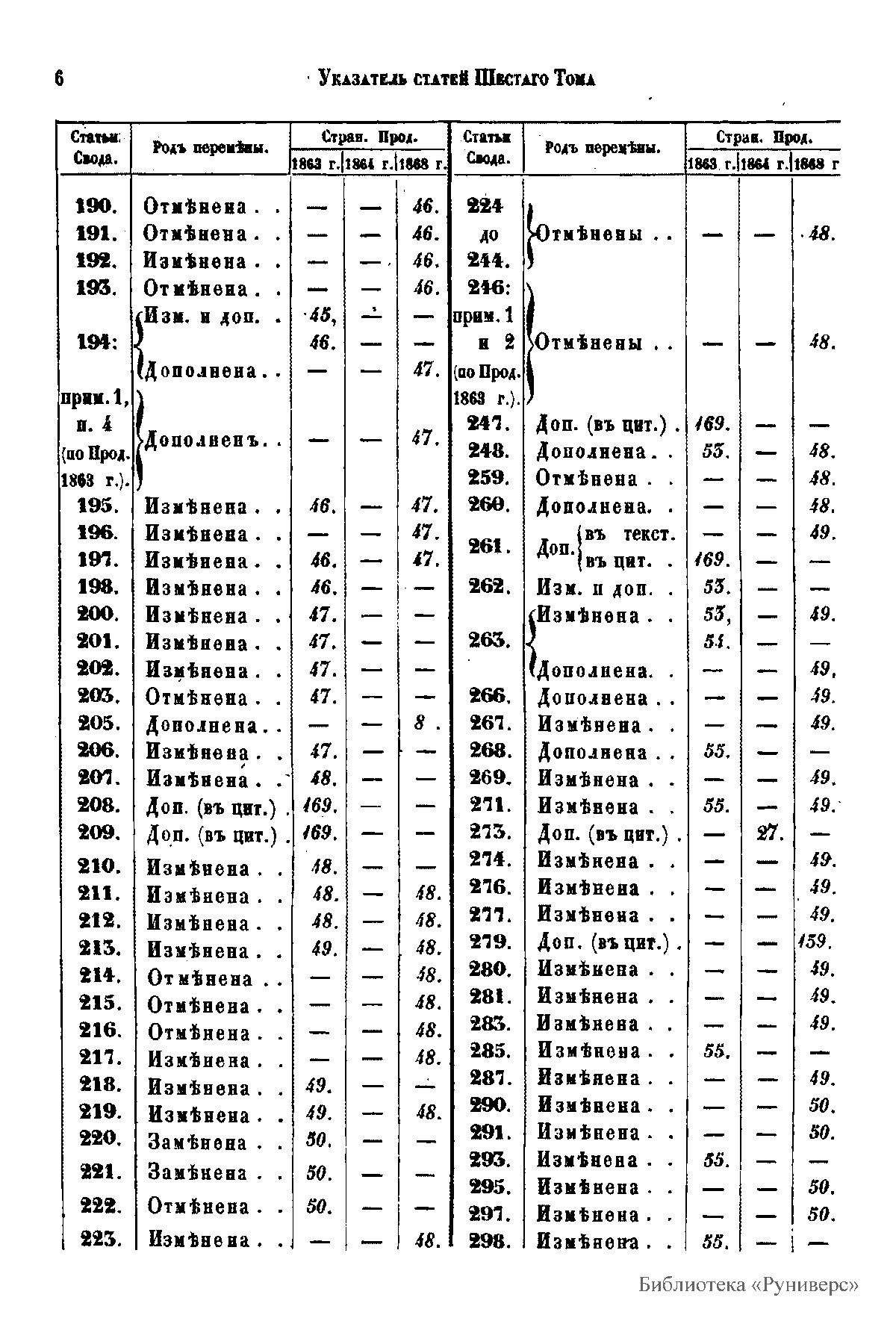 Продолжение свода законов Российской империи, изданного в 1857 году. С 1 января 1864 по 31 декабря 1867 года. Часть II. Статьи к VI, VII, VIII и IX томам свода
