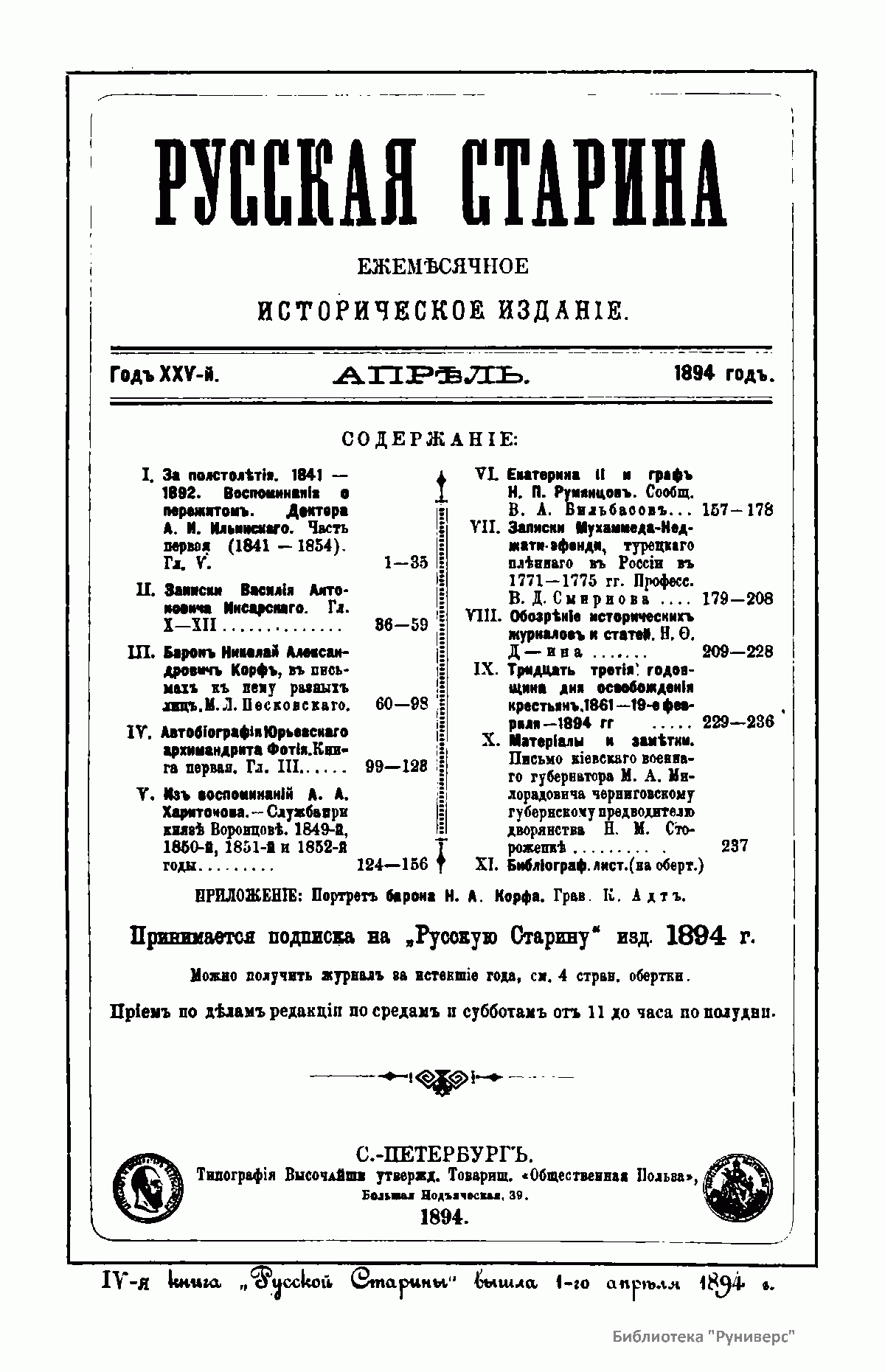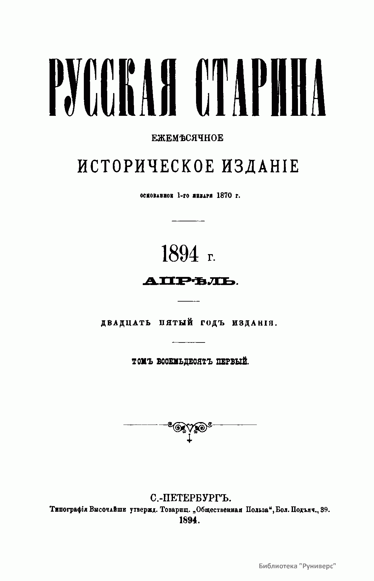 Русская старина. Том LXXXI. 1894. Выпуски 4-6