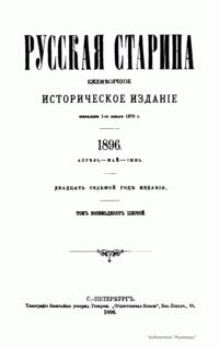 «Русская старина», ежемесячный исторический журнал, выходил в Петербурге в 1870-1918. Основан, издавался и редактировался (1870-1892) М. И. Семевским при участии В. И. Семевского. Последующими редакторами были Н. К. Шильдер (1892-1896), Н. Ф. Дубровин (1896-1904), военные историки С. П. Зыков, П. Н. Воронов.