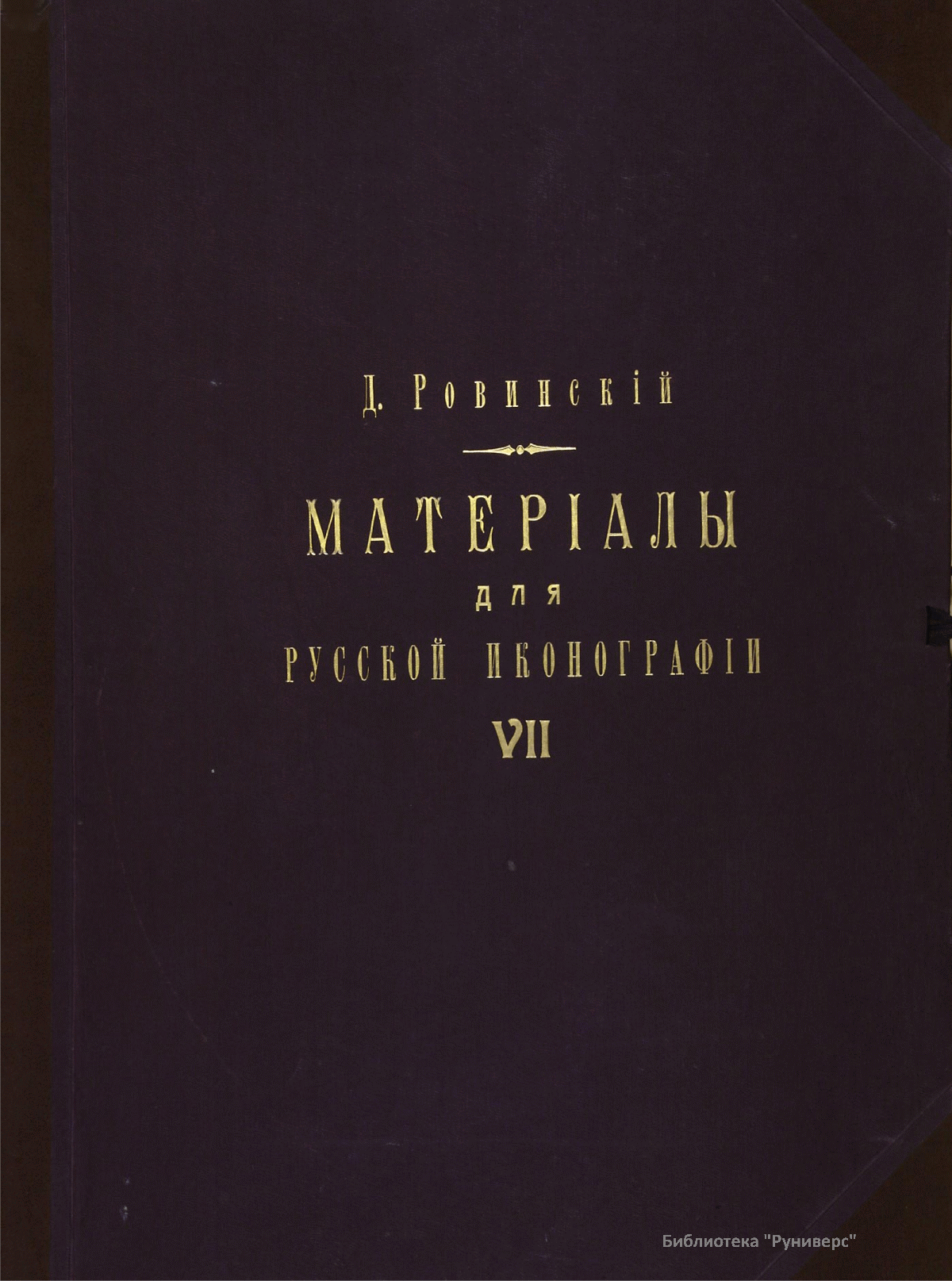 В 1882 г. Д. Ровинский издал книгу «Достоверные портреты московских государей: Ивана III, Василия Ивановича и Ивана IV Грозного – и посольства их времени». Это исследование составляло первый отдел предпринятой автором русской иконографии. За ним должны были следовать другие отделы. Материалов для каждого из этих отделов накопилось довольно много, но тем не менее существовали еще значительные пробелы, которые не позволяли приступить к систематическому изданию. Но так как любители и собиратели старины настаивали на издании, автор приступил к предварительной публикации собранных им снимков под общим названием «Материалы для русской иконографии». В эти материалы вошли портреты, виды, исторические и бытовые листы, листы, изготовленные для истории русской гравюры, работы граверов-серебряников, а также отпечатки с оригинальных старинных медных досок. Все снимки, за немногим исключением, сделаны в одну меру с оригиналами. Самые замечательные и редкие исполнены на меди по способу Г. Скамони, или печатаны со стекла посредством альбертотипии (у Шера и Набгольца в Москве и за границей) и фотогиалотипии (у г. Скамони); менее редкие и важные картинки исполнены посредством фотолитографии.