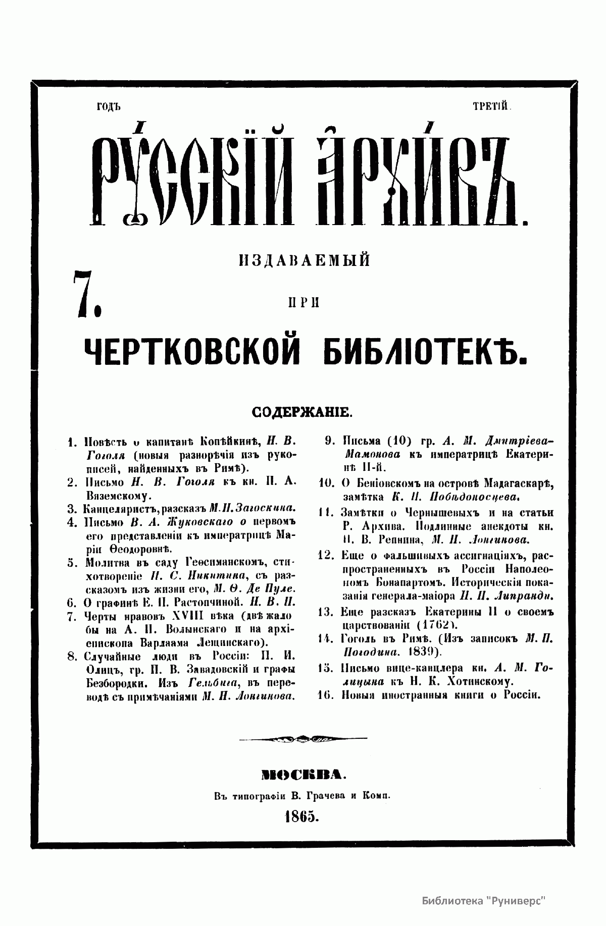 Русскiй архивъ. Историко-литературный сборникъ. 1865. Выпуски 7-12
