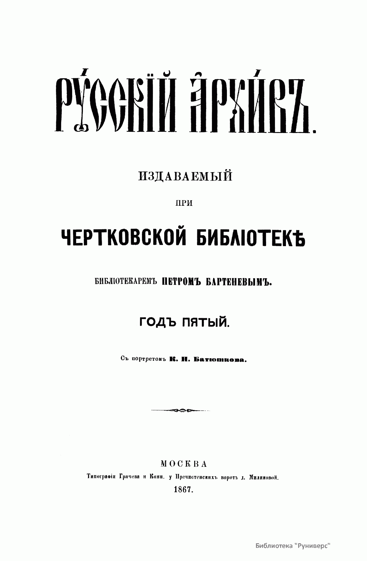 Русский архив. Историко-литературный сборник. 1867. Выпуски 1-6