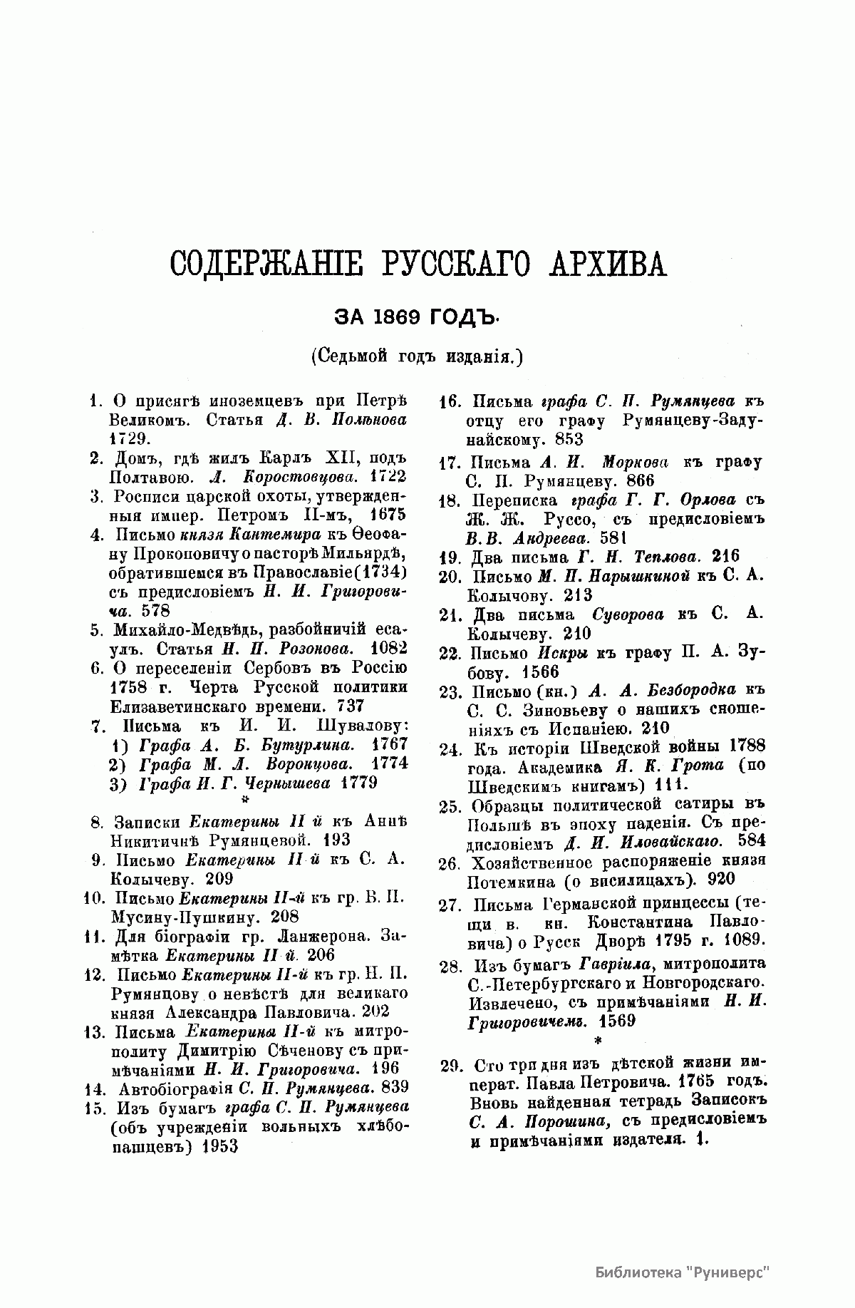 Русскiй архивъ. Историко-литературный сборникъ. 1869. Выпуски 1-6