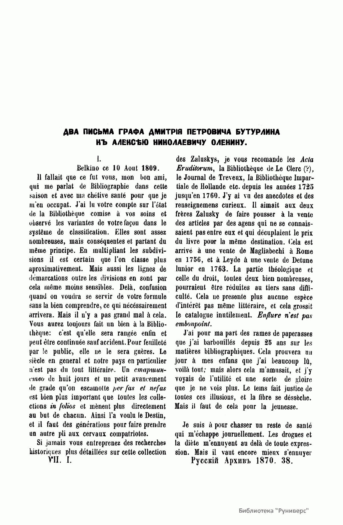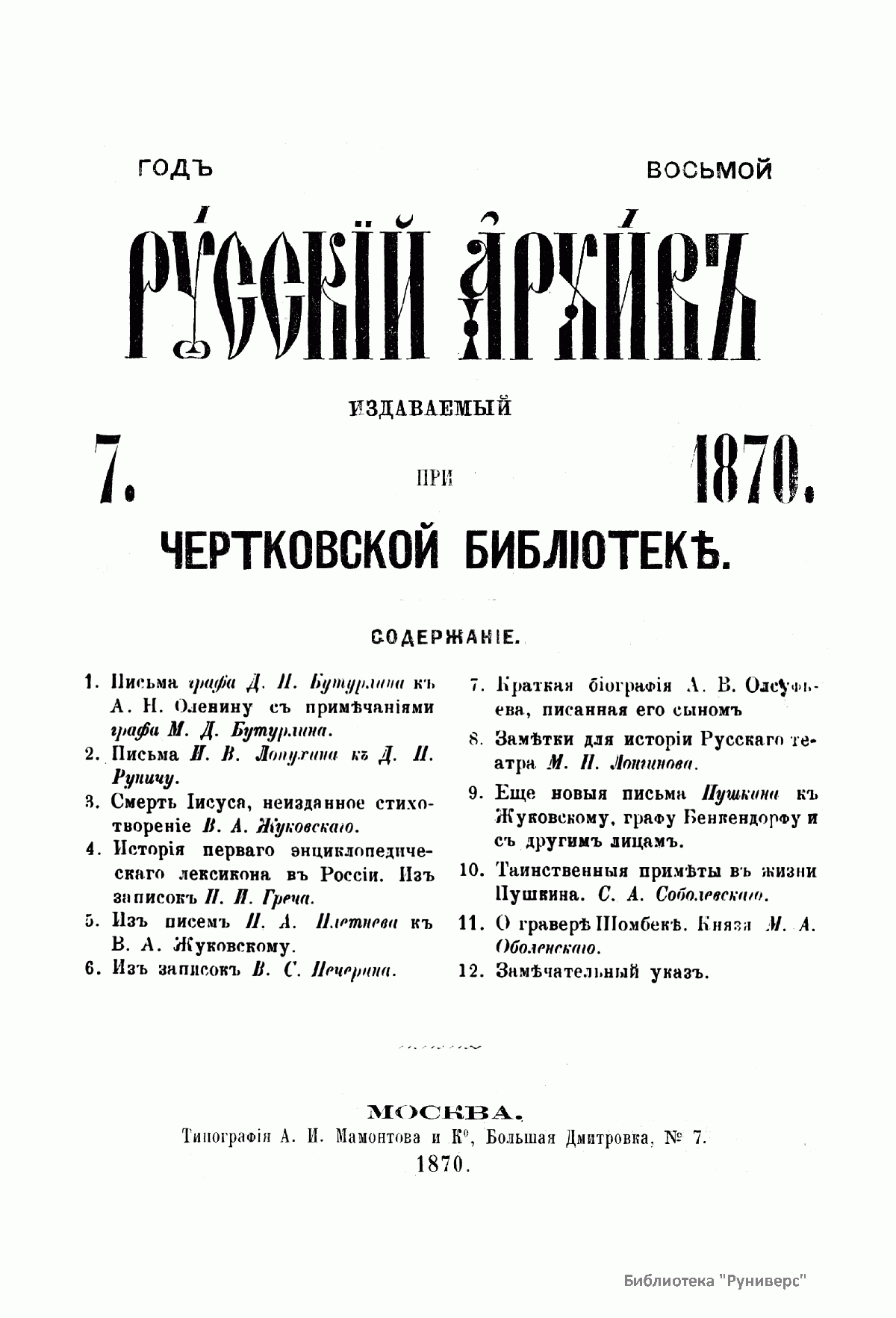 Русскiй архивъ. Историко-литературный сборникъ. 1870. Выпуски 7-12