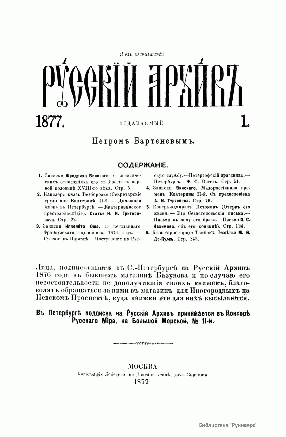 Русскiй архивъ. Историко-литературный сборникъ. 1877. Выпуски 1-4