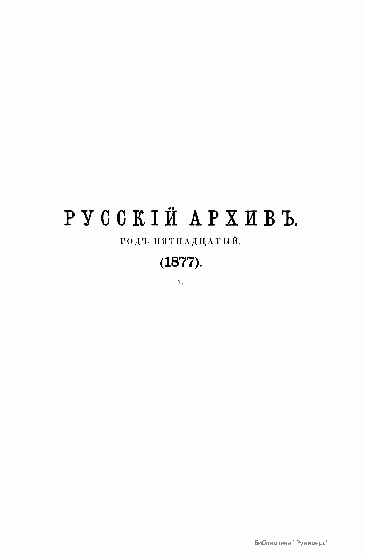 Русский архив. Историко-литературный сборник. 1877. Выпуски 1-4