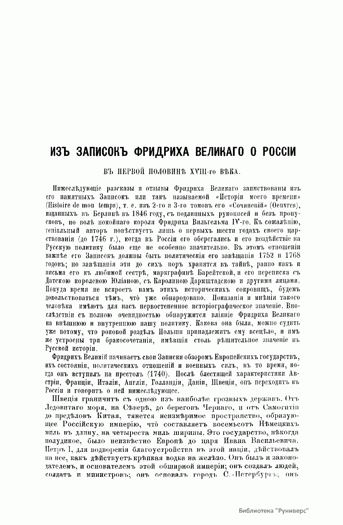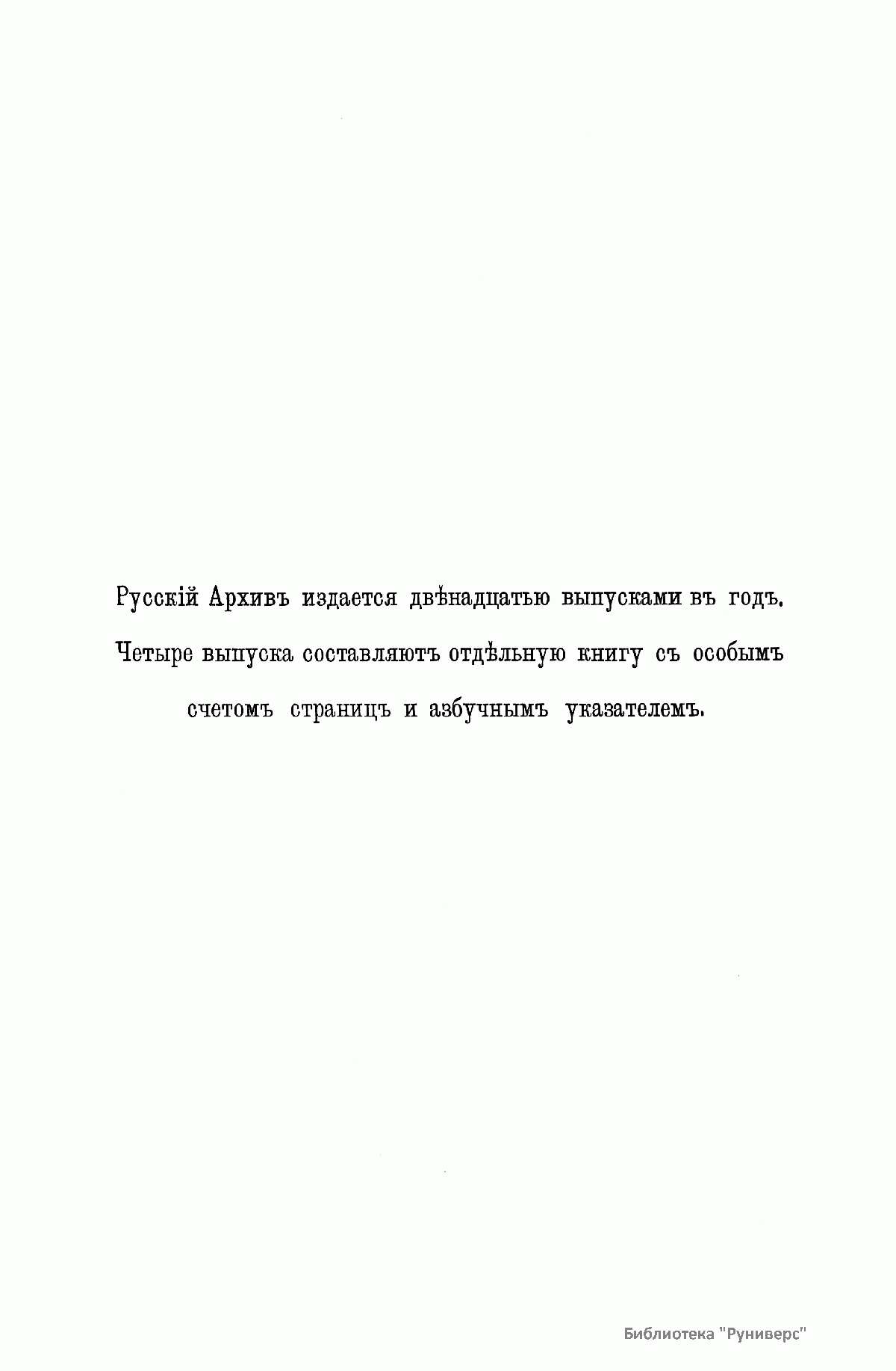 «Русский архив» — ежемесячный историко-литературный журнал, издававшийся в Москве с 1863 по 1917 год. Создателем и продолжительные годы редактором журнала был П. И. Бартенев – историк, археограф, библиограф. Этот журнал называли «живой картиной былого», поскольку он содержал преимущественно публикации неизданных мемуарных, эпистолярных, литературно-художественных и ведомственных документальных материалов, освещавших культурную и политическую историю России в XVIII и XIX вв. По числу опубликованных источников «Русский архив» стоит на первом месте среди русских исторических журналов.