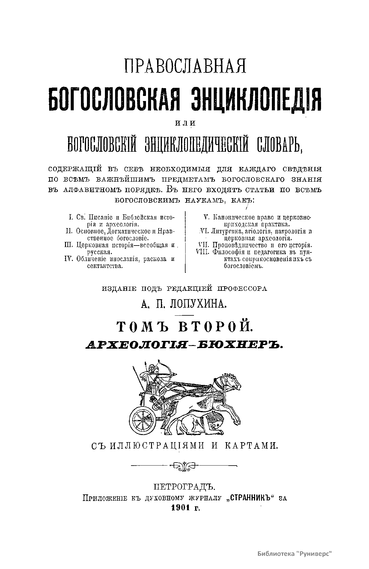 Православная богословская энциклопедiя. Томъ II. Археологiя-Бюхнеръ