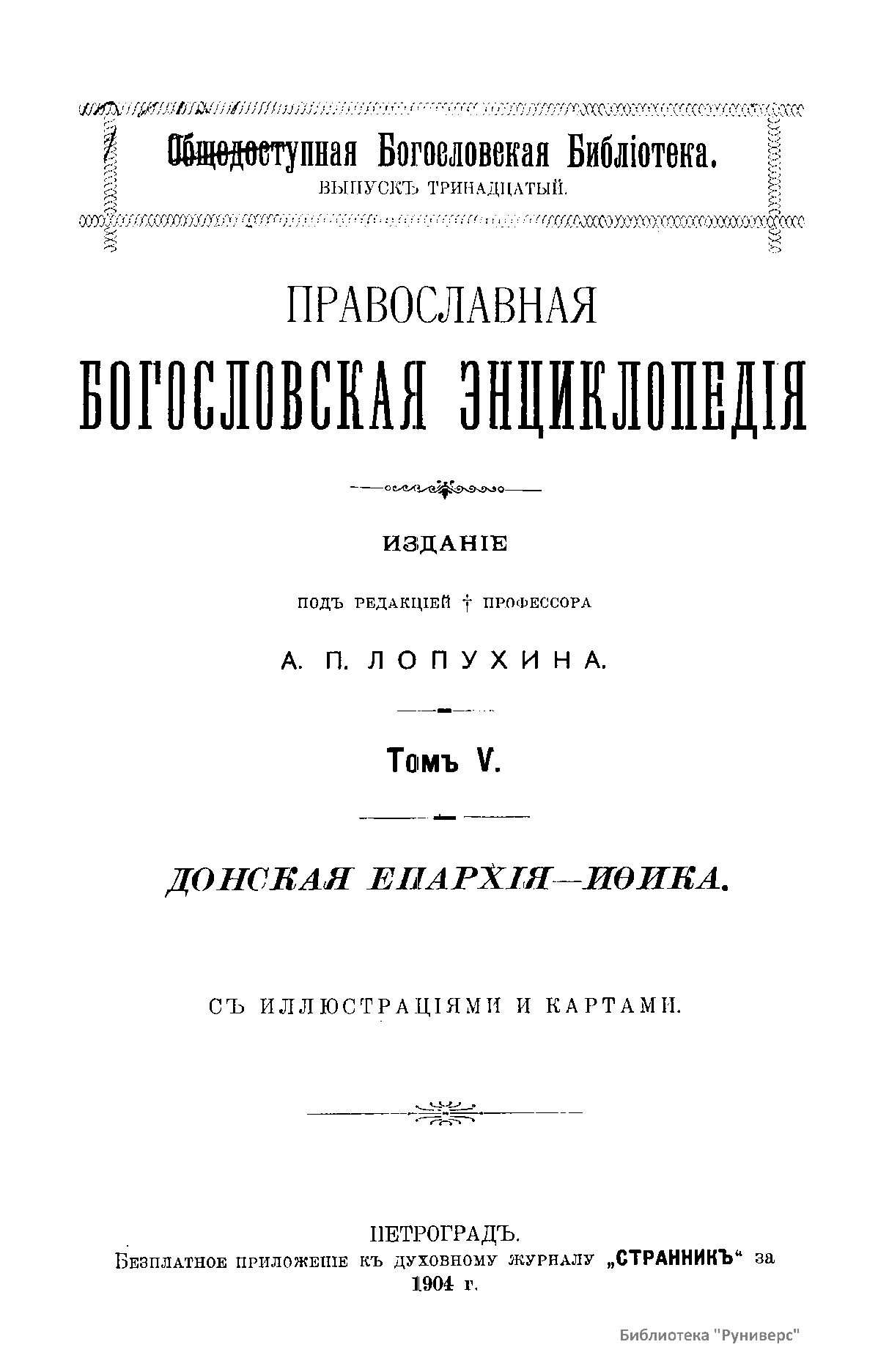 Православная богословская энциклопедiя. Томъ V. Донская епархiя - Иѳика