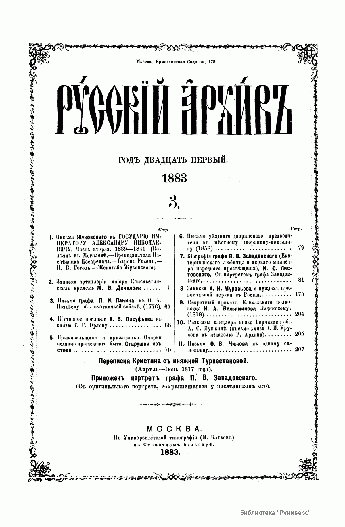 Русский архив. Историко-литературный сборник. 1883. Выпуски 3-4