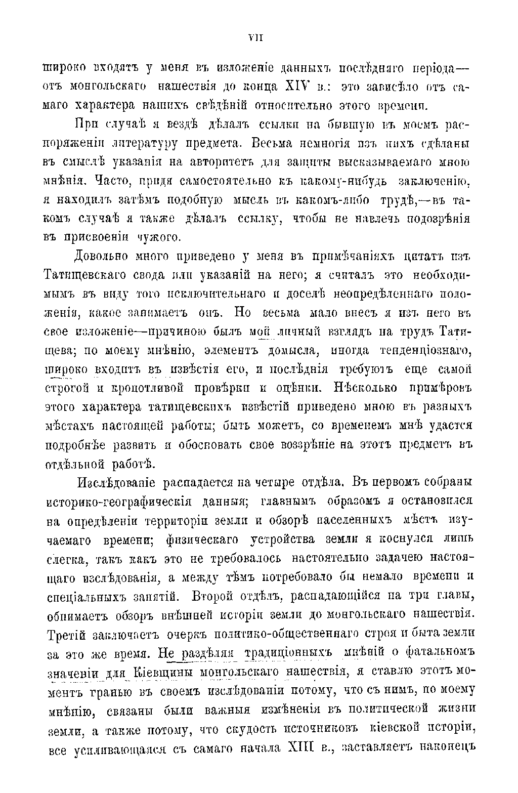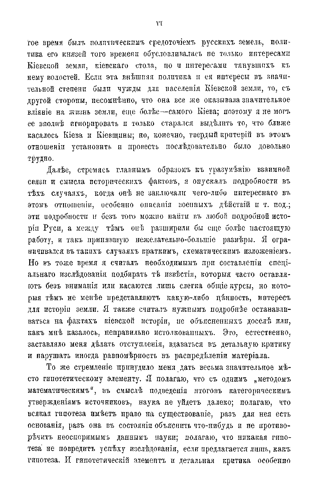 М. С. Грушевский стремится в своём исследовании уяснить взаимную связь и смысл исторических фактов, подбирает те факты, которые ранее оставались без внимания или были, по его мнению, неправильно истолкованы. В связи с этим автор оставляет в своей работе место гипотетическому элементу, так как с одним «математическим методом» наука не может далеко уйти и всякая гипотеза имеет право на существование, если не противоречит неоспоримым научным данным.