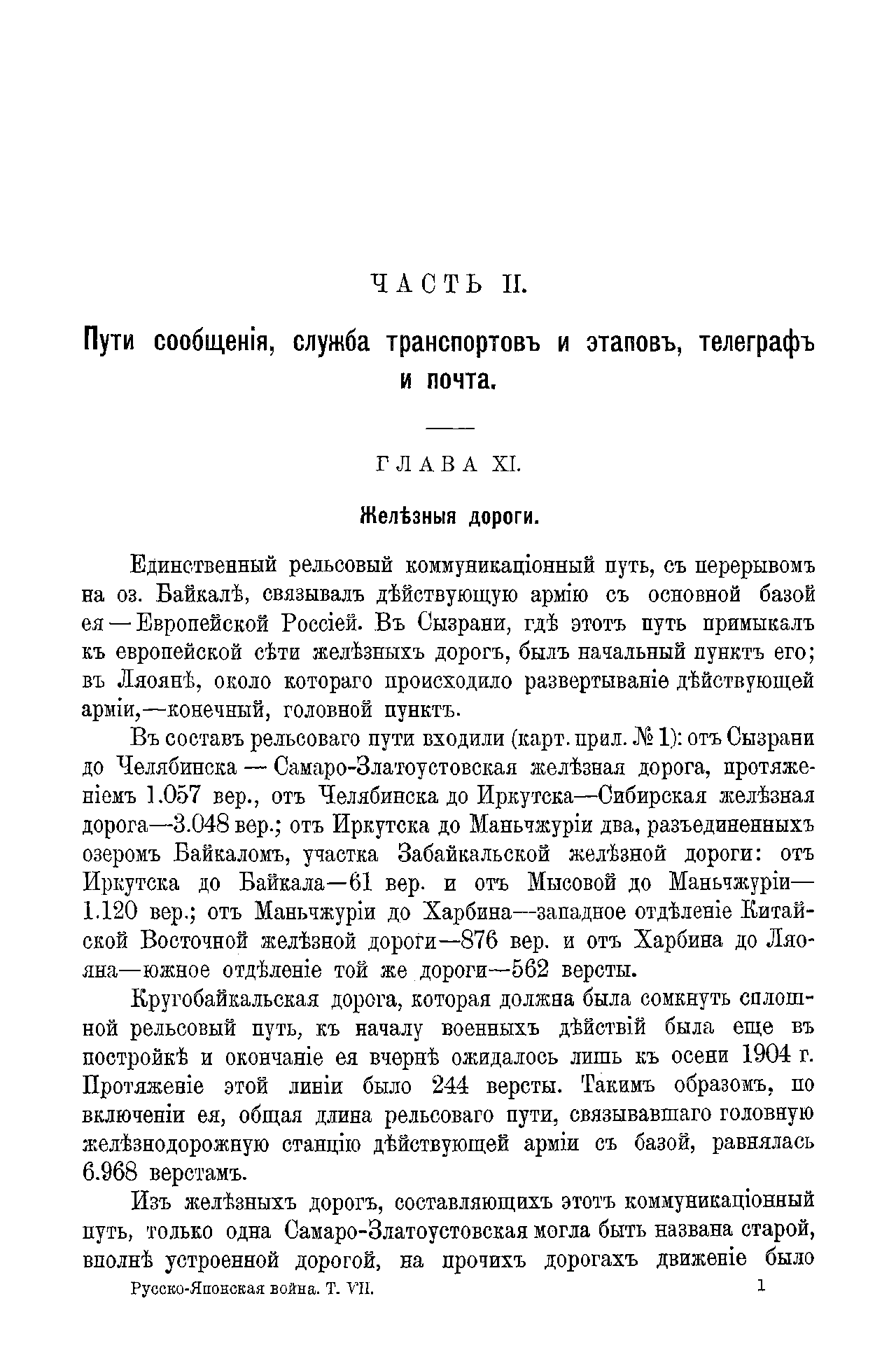 Русско-Японская война 1904-1905 гг. Томъ VII. Тылъ дѣйствующей армiи. Часть вторая. Пути сообщенiя. Средства передвиженiй и сношенiй