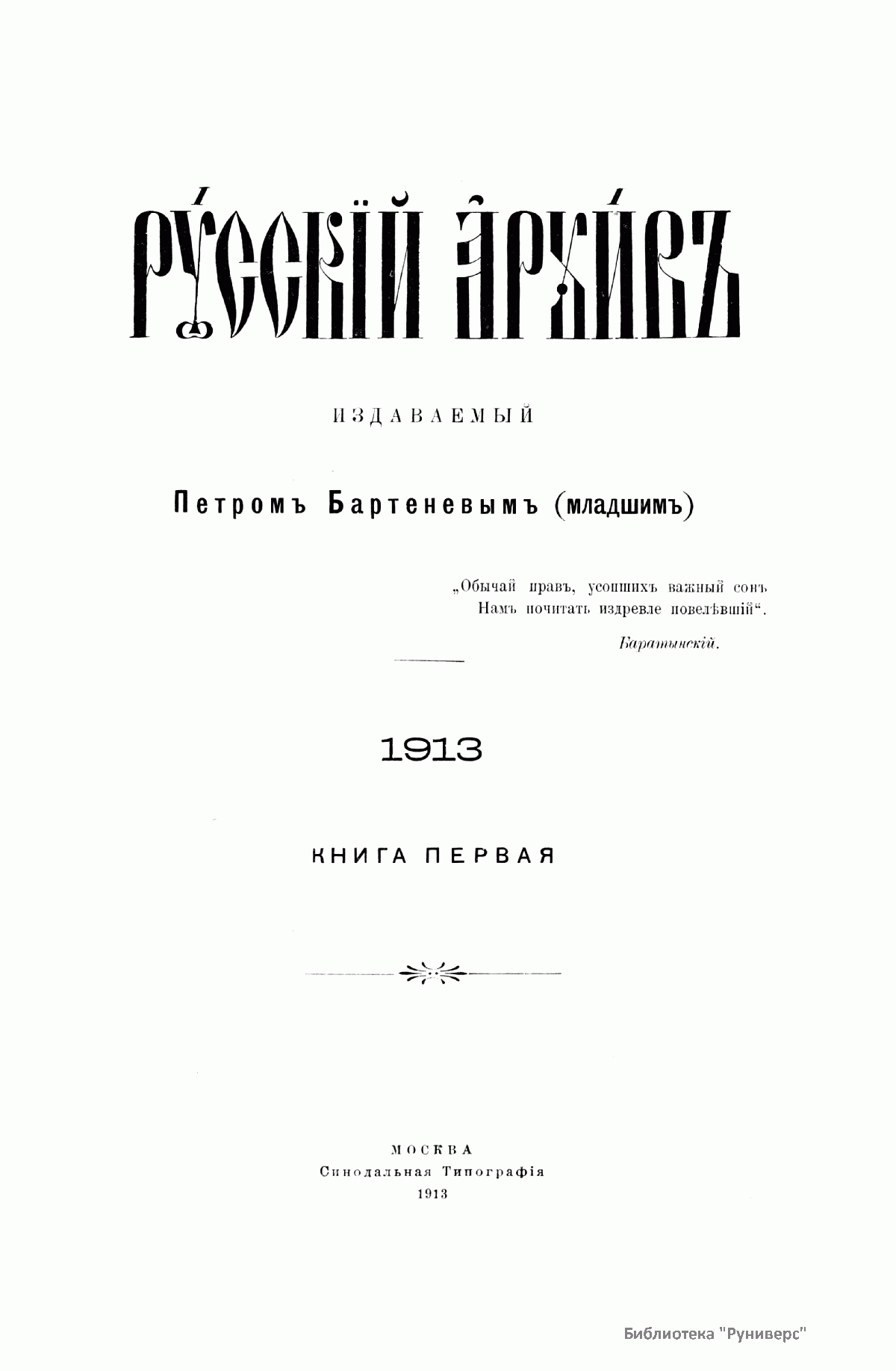 Русскiй архивъ. Историко-литературный сборникъ. 1913. Выпуски 1-6
