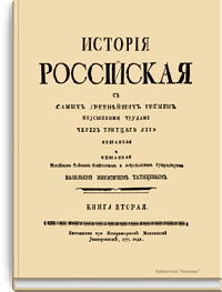 Исторiя Россiйская съ самыхъ древнѣйших временъ неусыпными трудами черезъ тритцать лѣтъ собранная и описанная покойным тайнымъ советникомъ и астраханскимъ губернаторомъ, Васильемъ Никитичемъ Татищевымъ. Книга вторая