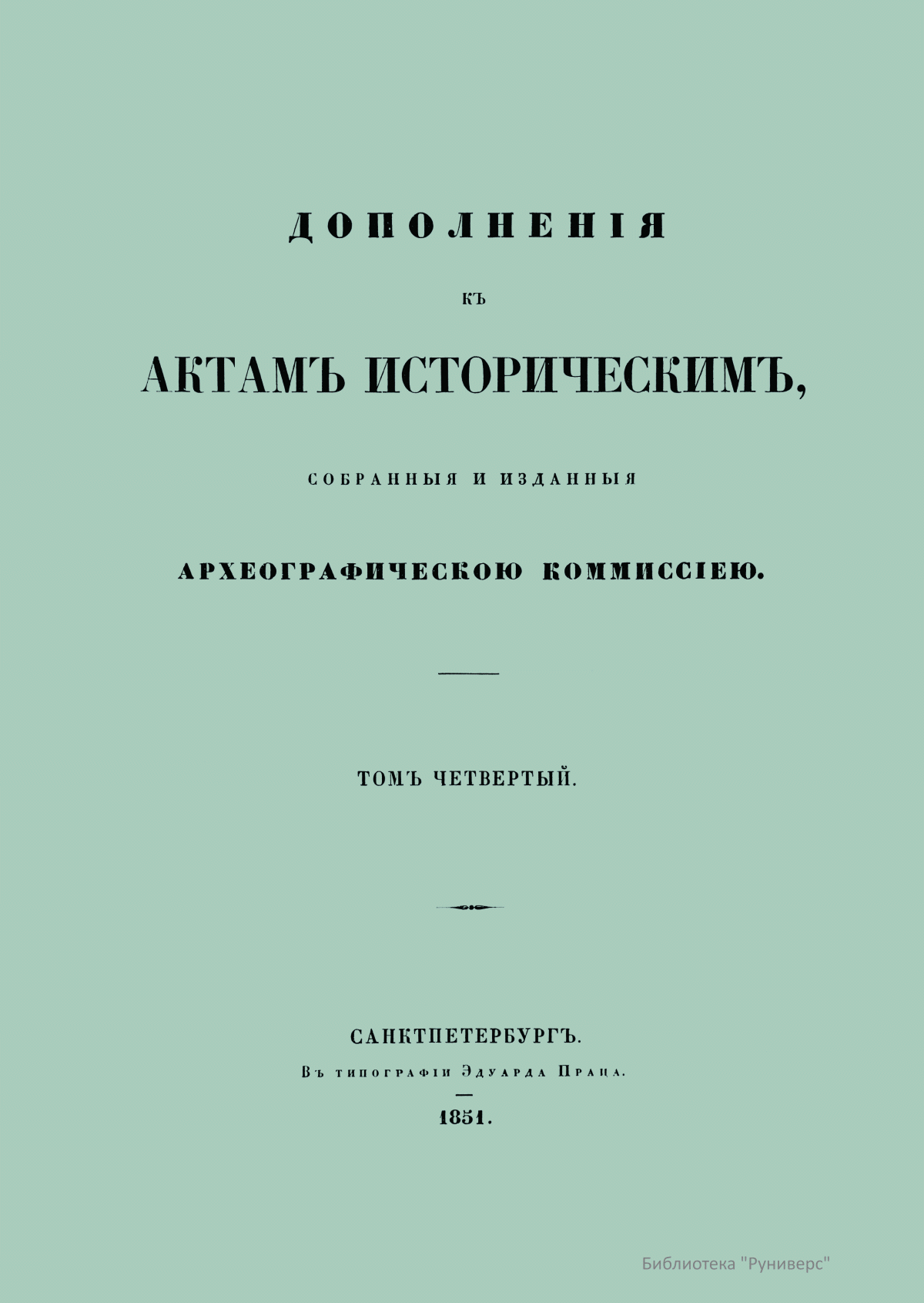 Дополнения к актам историческим, собранные и изданные археографической комиссией. Том четвертый